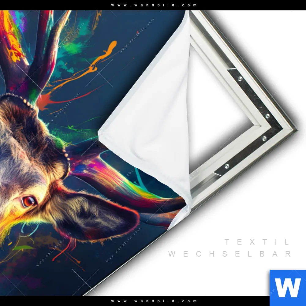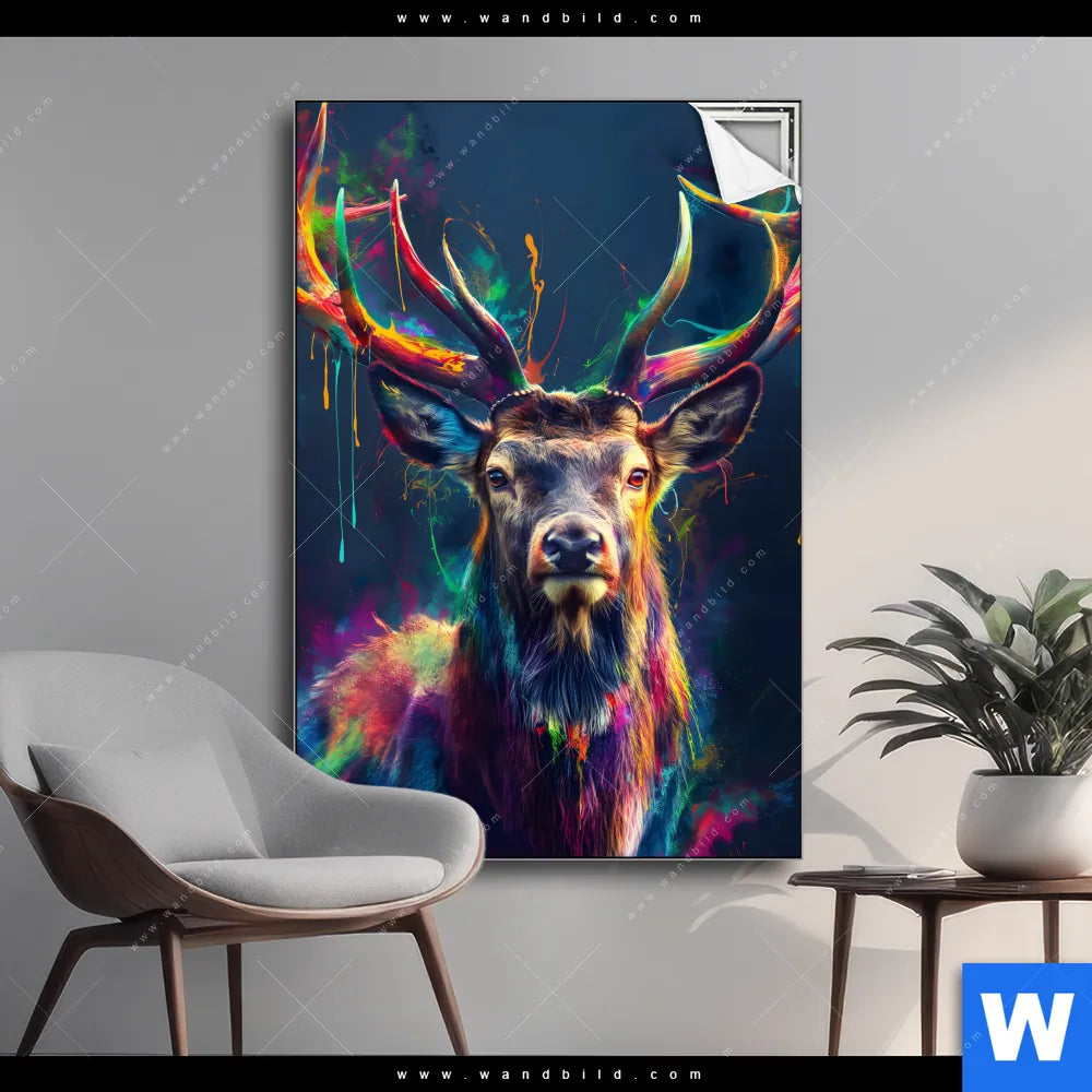 Spannbild | Hirsch im leuchtenden Farbmix | Hochformat