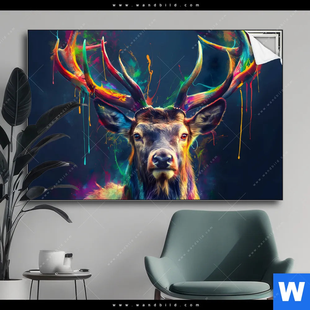 Spannbild | Hirsch im leuchtenden Farbmix | Querformat