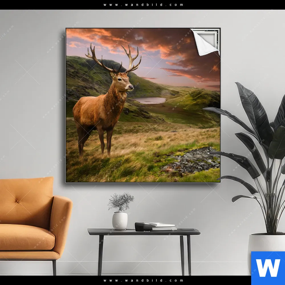 Spannbild | Hirsch in Gebirgslandschaft | Quadrat