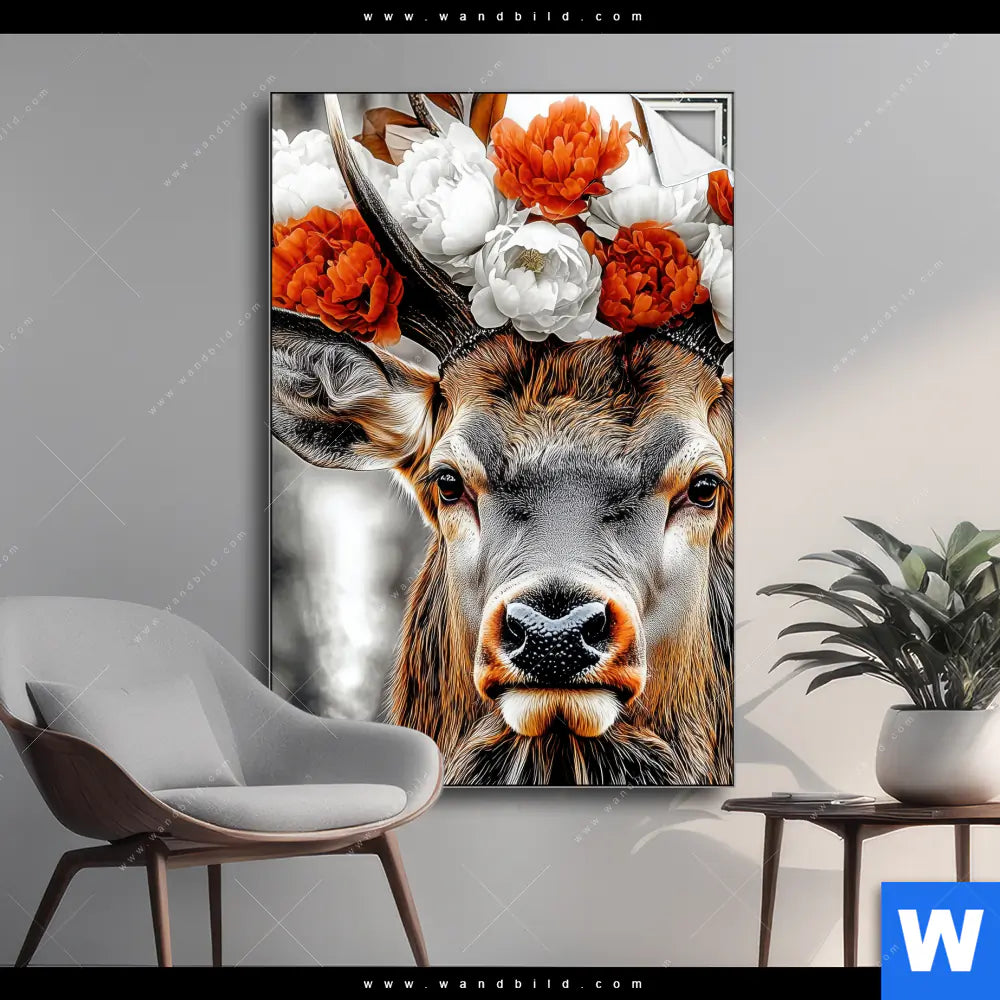 Spannbild | Hirsch mit Blumenkrone | Hochformat