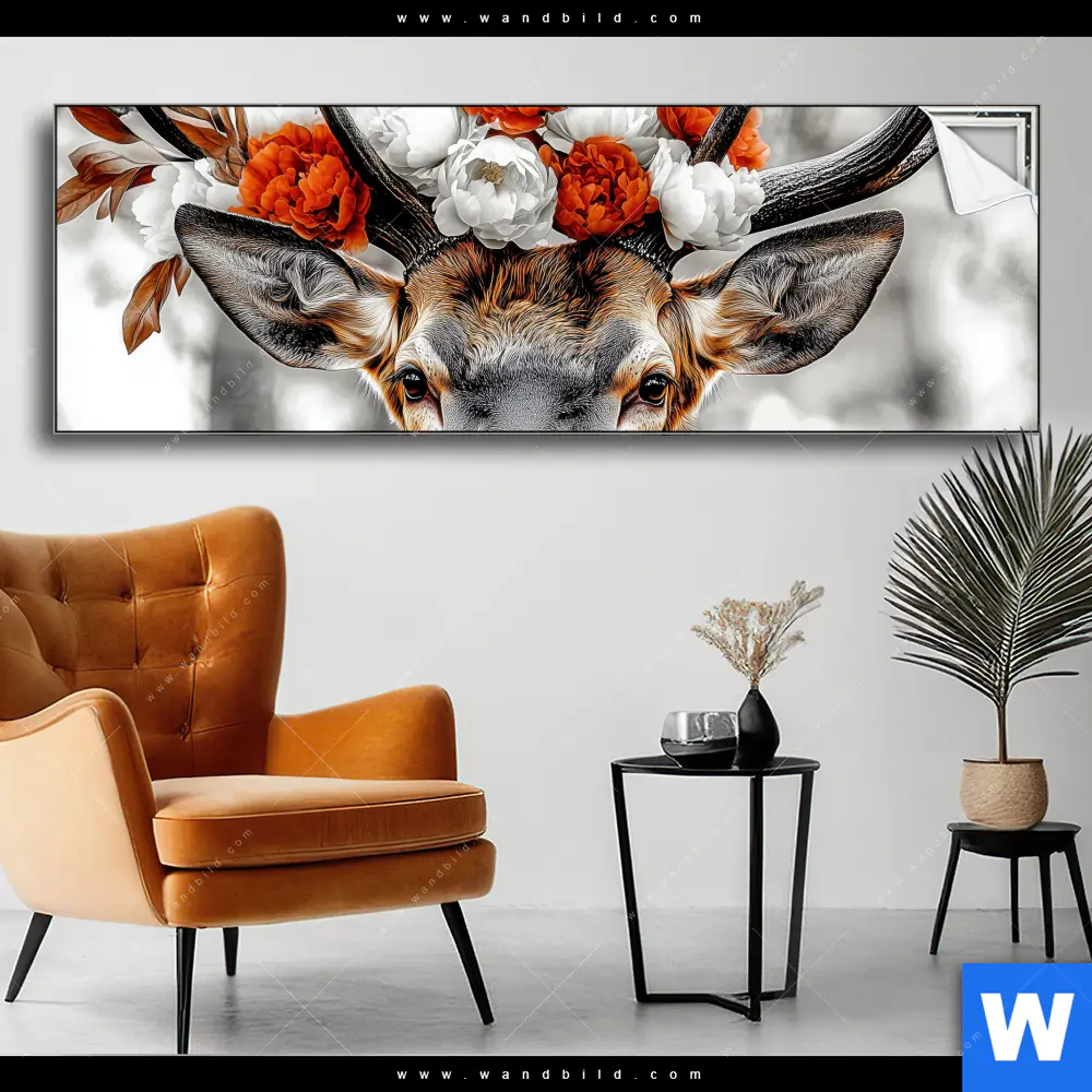 Spannbild | Hirsch mit Blumenkrone | Panorama