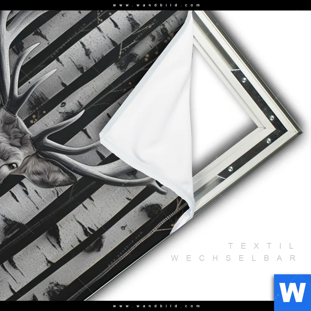 Spannbild | Hirschporträt vor Birken | Hochformat