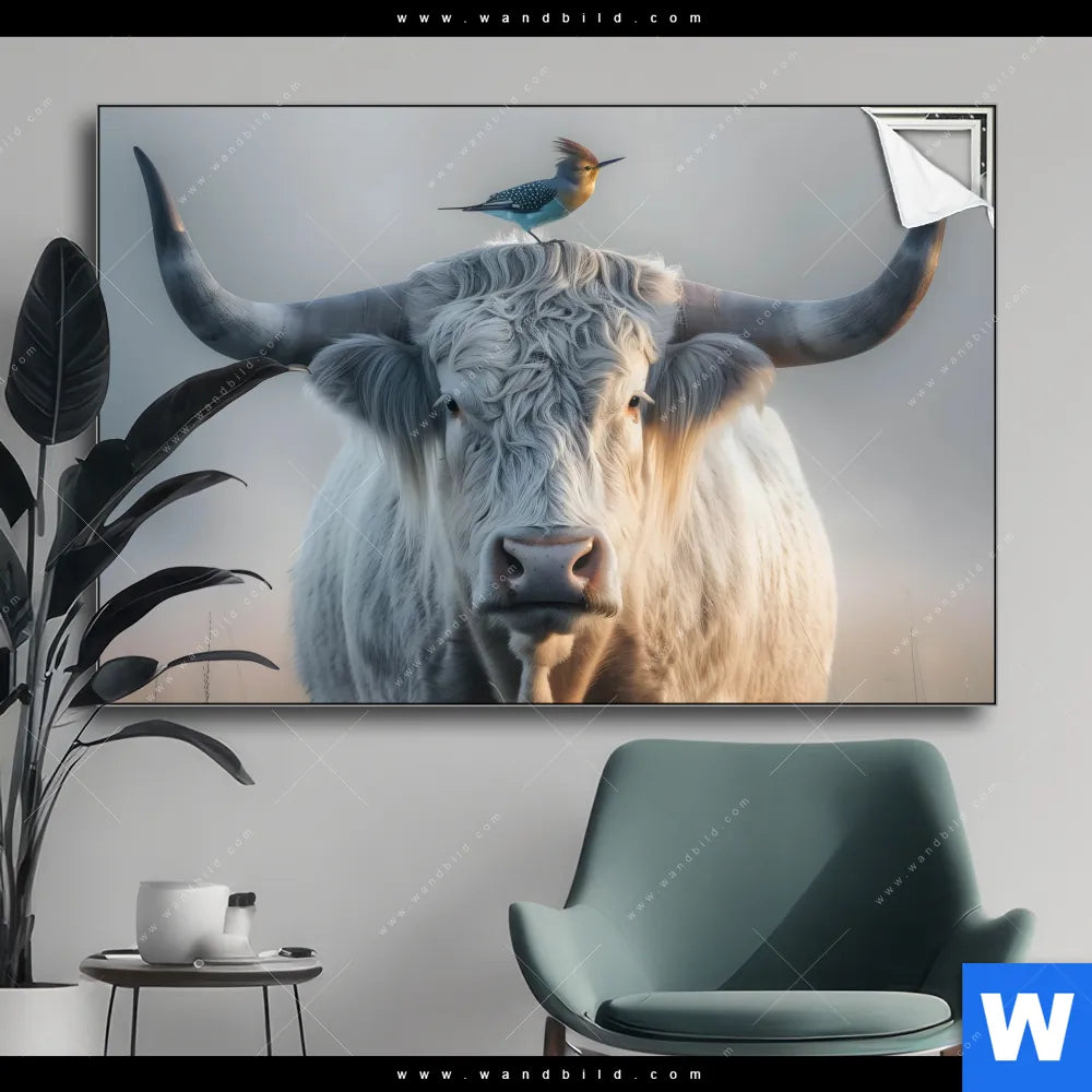 Spannbild | Hochlandrind & bunter Vogel | Querformat