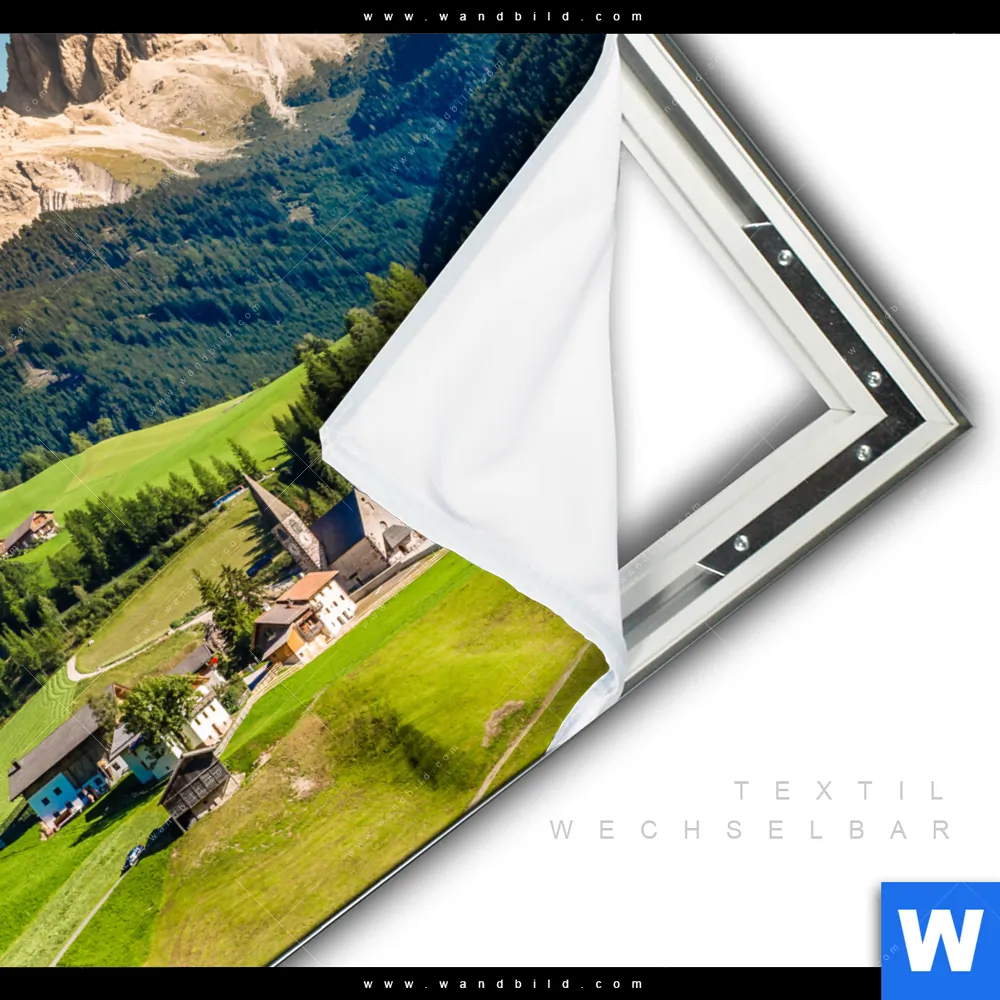 Wechselbild mit Flachkeder-Technik inkl. Aluminium-Textilrahmen