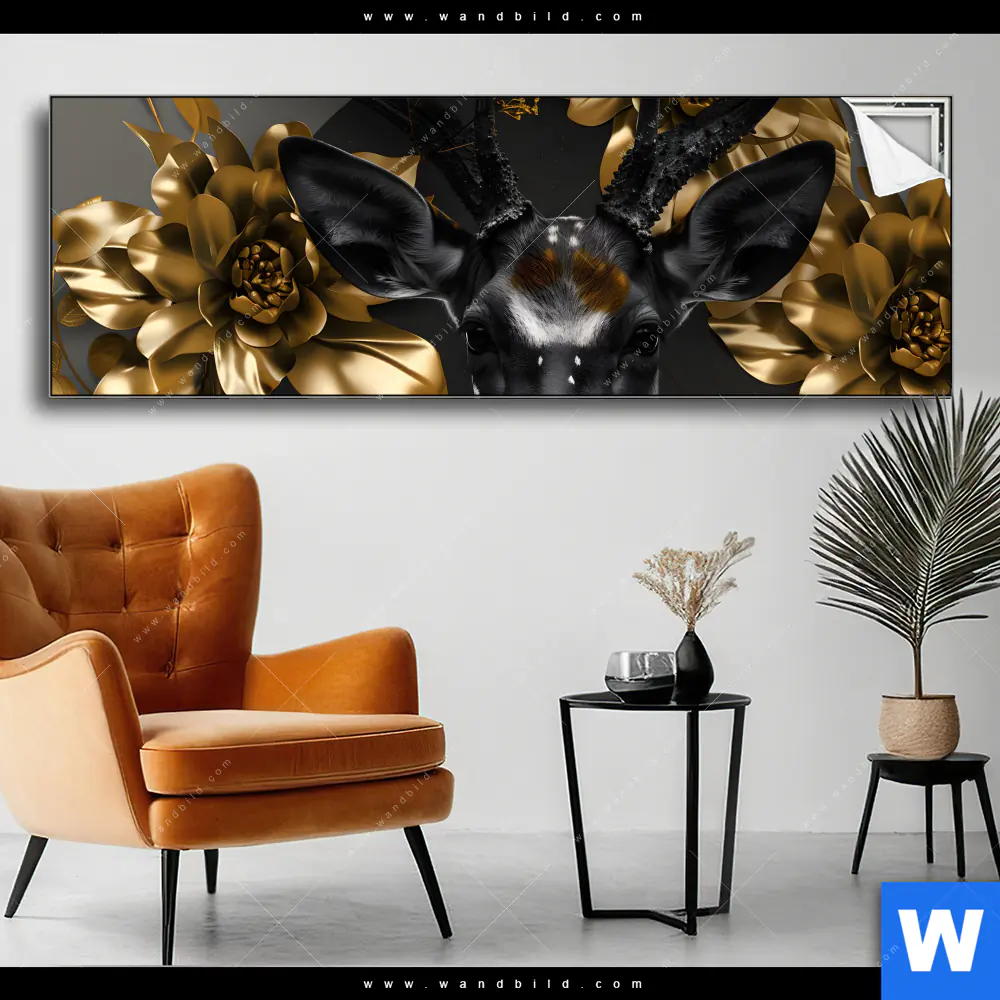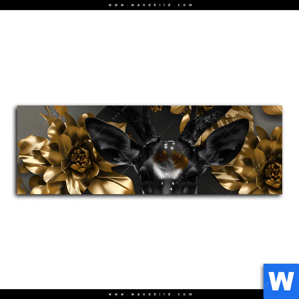 Spannbild | Junger Hirsch und Goldblumen | Panorama