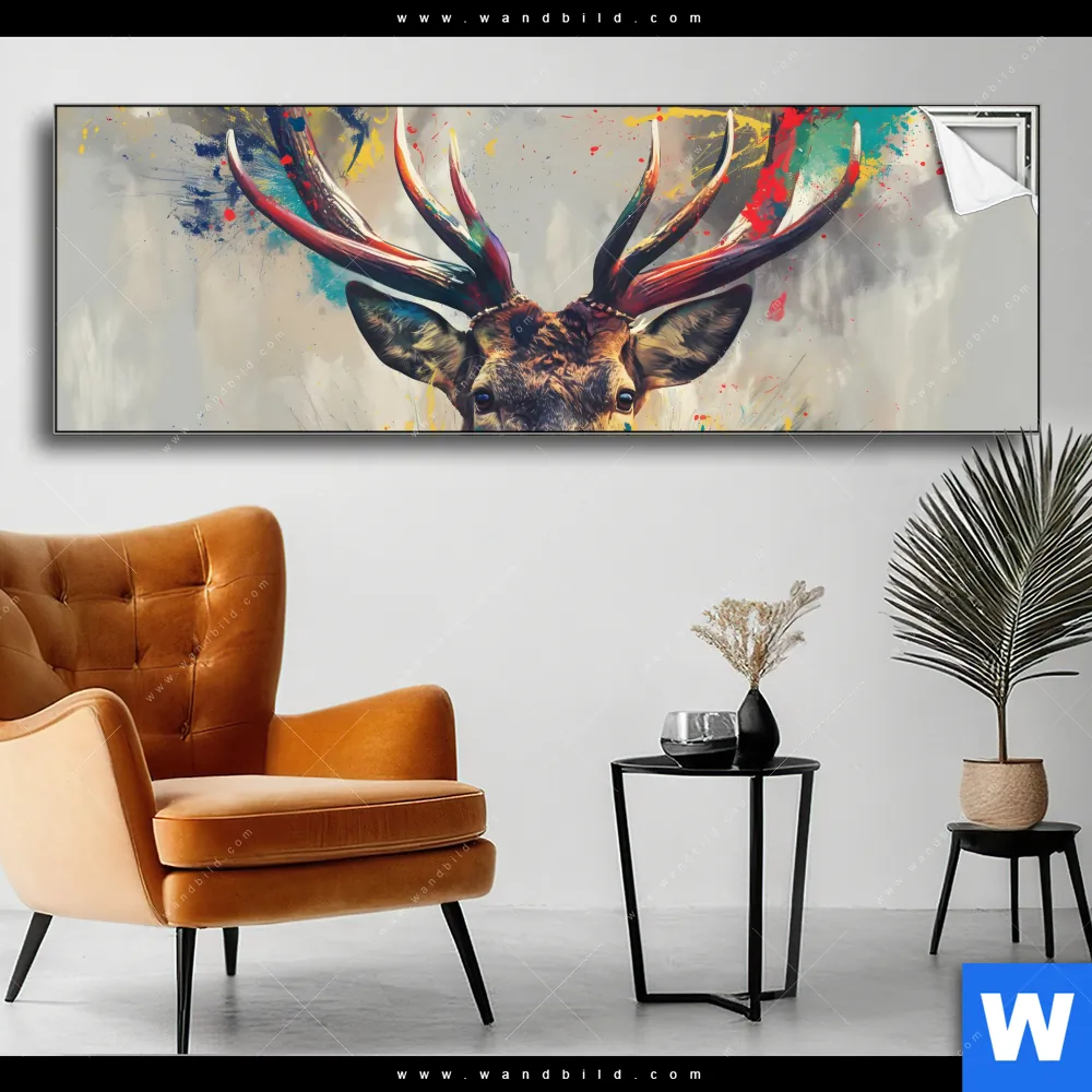 Spannbild | Kreativer Hirsch mit Farbspritzern | Panorama