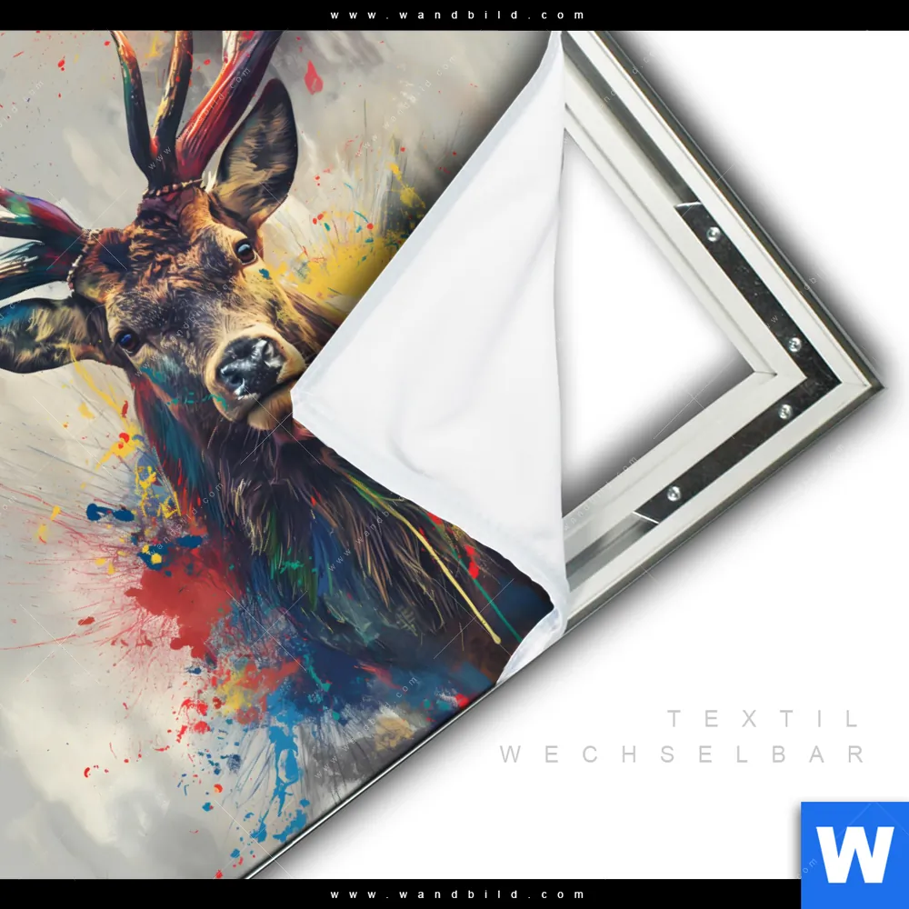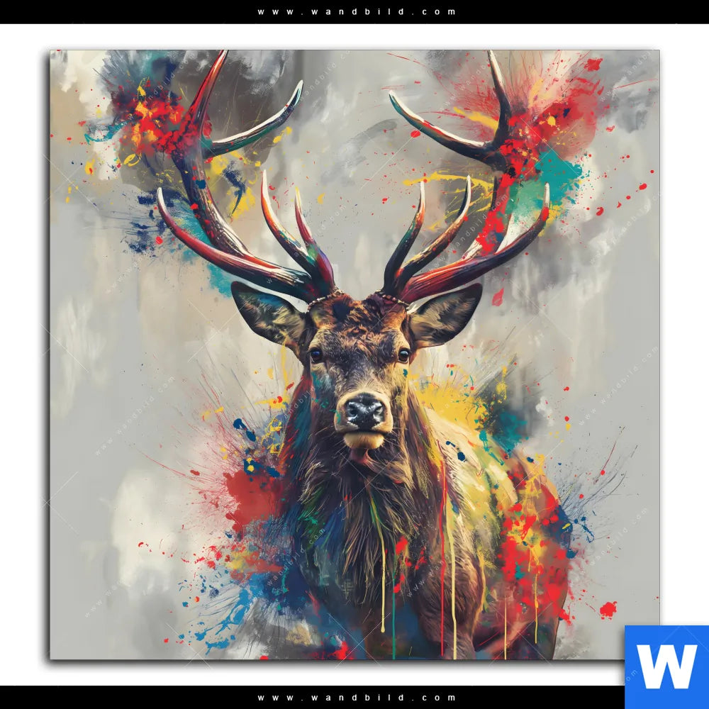 Spannbild | Kreativer Hirsch mit Farbspritzern | Quadrat