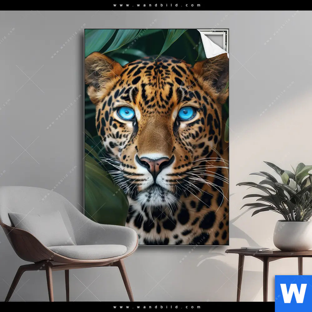 Spannbild | Leopard mit blauen Augen | Hochformat