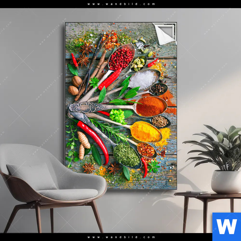 Spannbild | Löffel mit Kräutern und Gewürzen | Hochformat