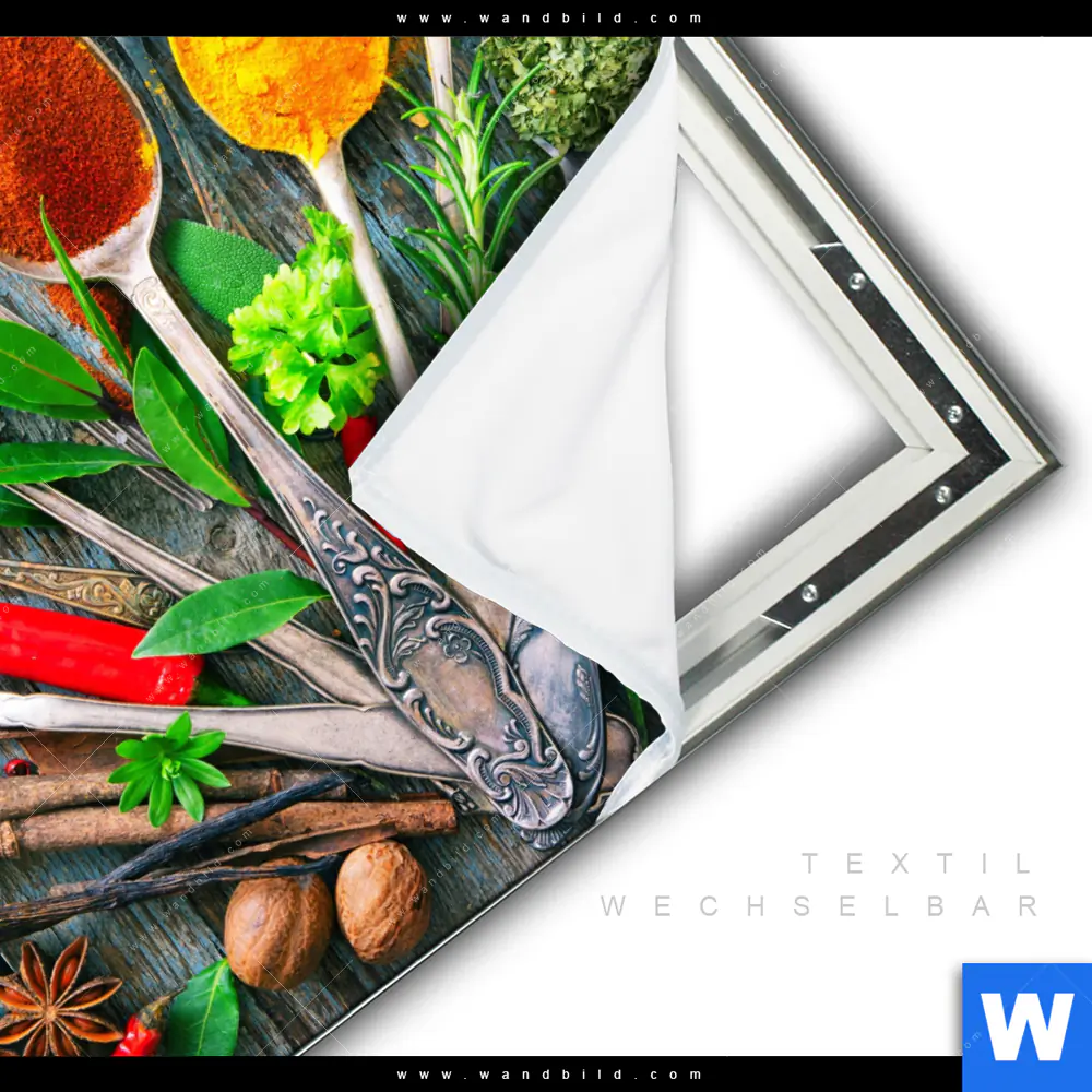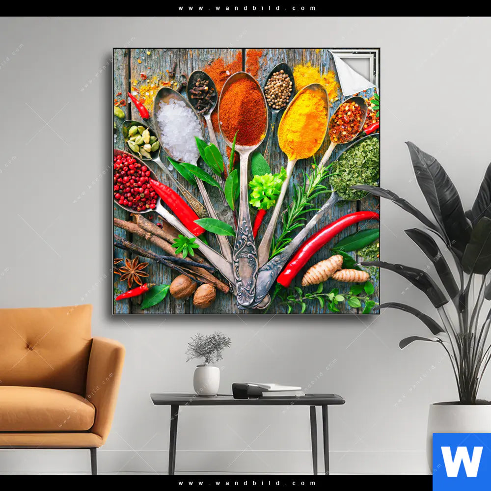Spannbild | Löffel mit Kräutern und Gewürzen | Quadrat
