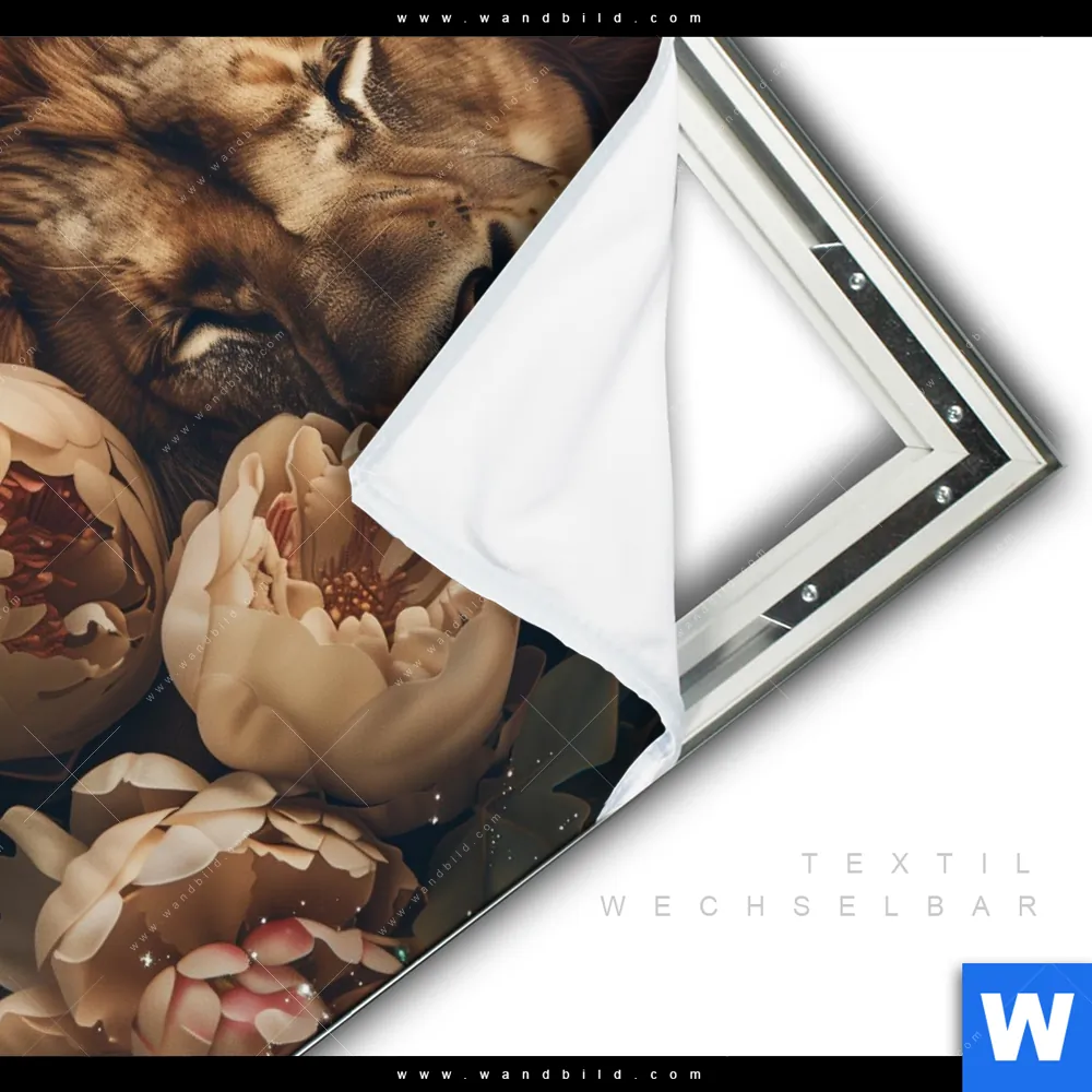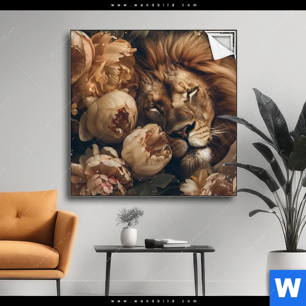 Spannbild | Löwe schläft in Blüten | Quadrat