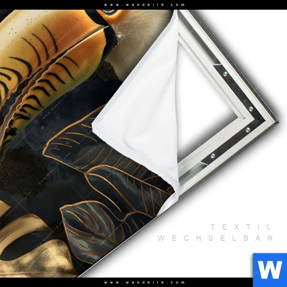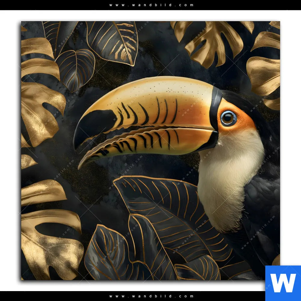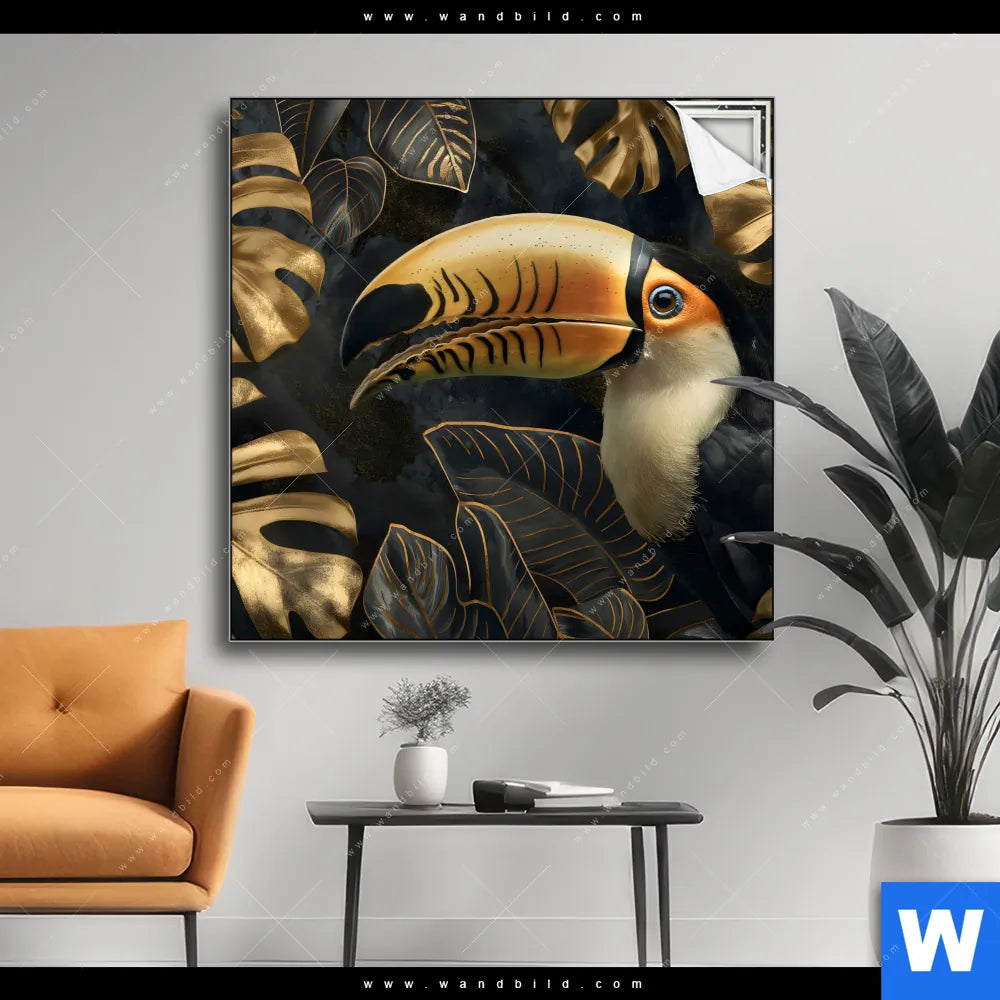 Spannbild | Monstera und Tukan Gold | Quadrat