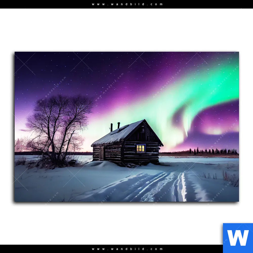 Spannbild | Nordlichter über einem Holzhaus | Querformat