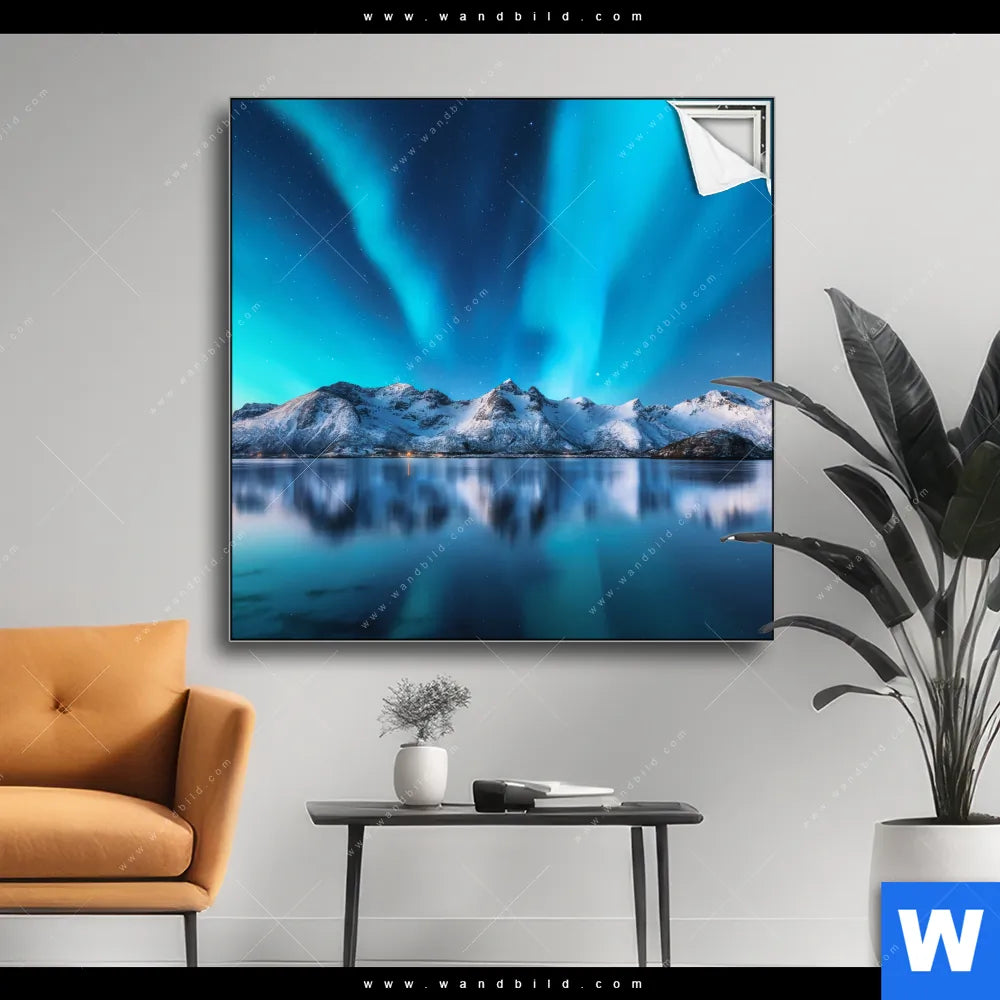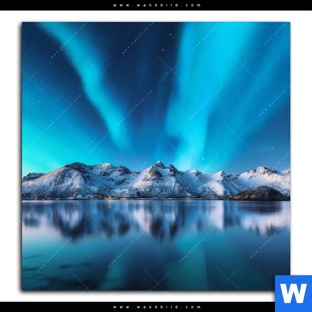 Spannbild | Nordlichter und schneebedeckte Berge | Quadrat