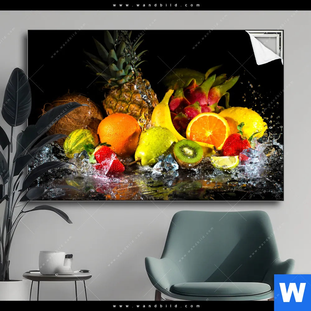 Spannbild | Obst-in spritzendem Wasser | Querformat