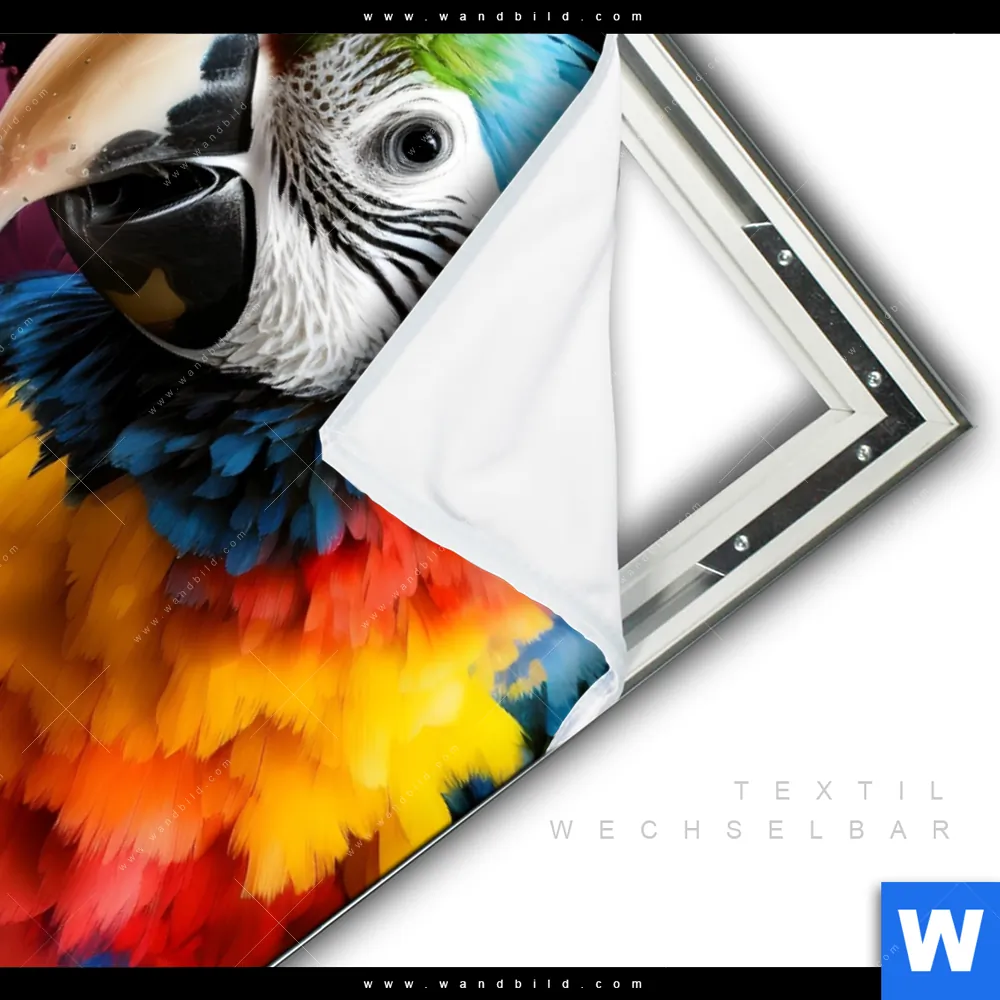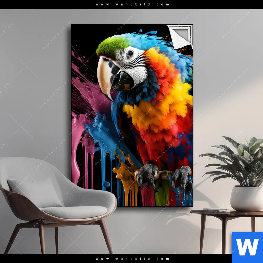 Spannbild | Papagei mit bunten Farbspritzern | Hochformat