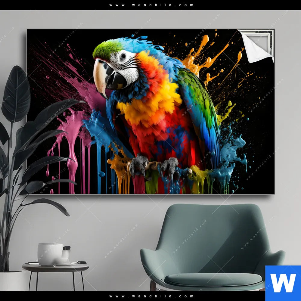 Spannbild | Papagei mit bunten Farbspritzern | Querformat