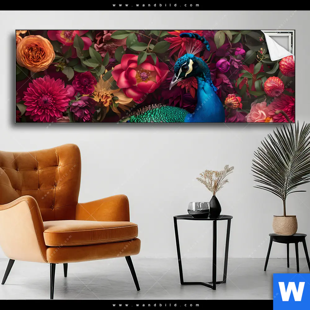 Spannbild | Prachtvoller Pfau und Blüten | Panorama