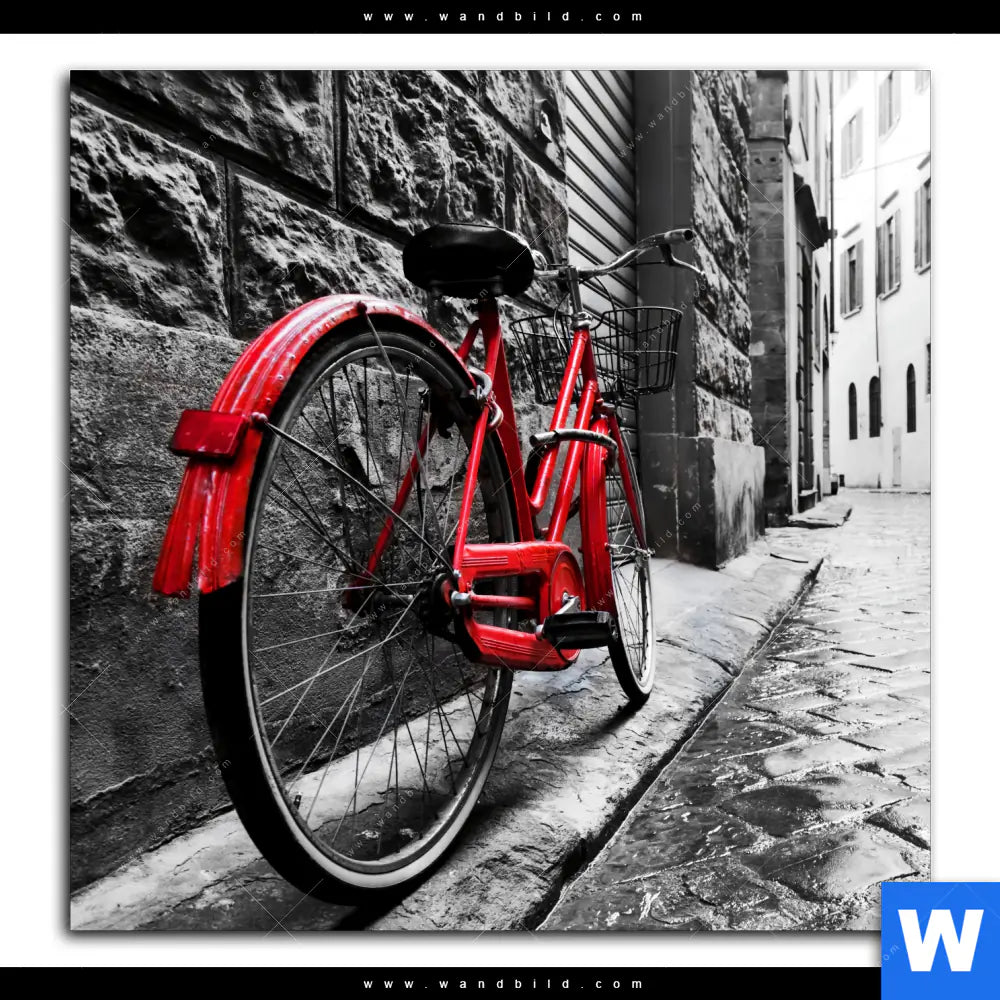 Spannbild | Rotes Fahrrad in Gasse | Quadrat