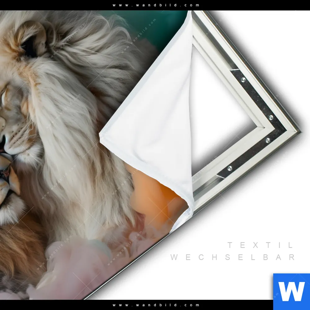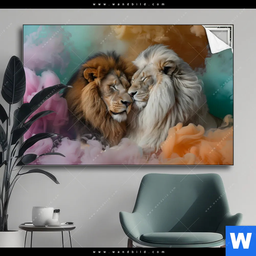 Spannbild | Sanfte Löwenmomente in buntem Nebel | Querformat