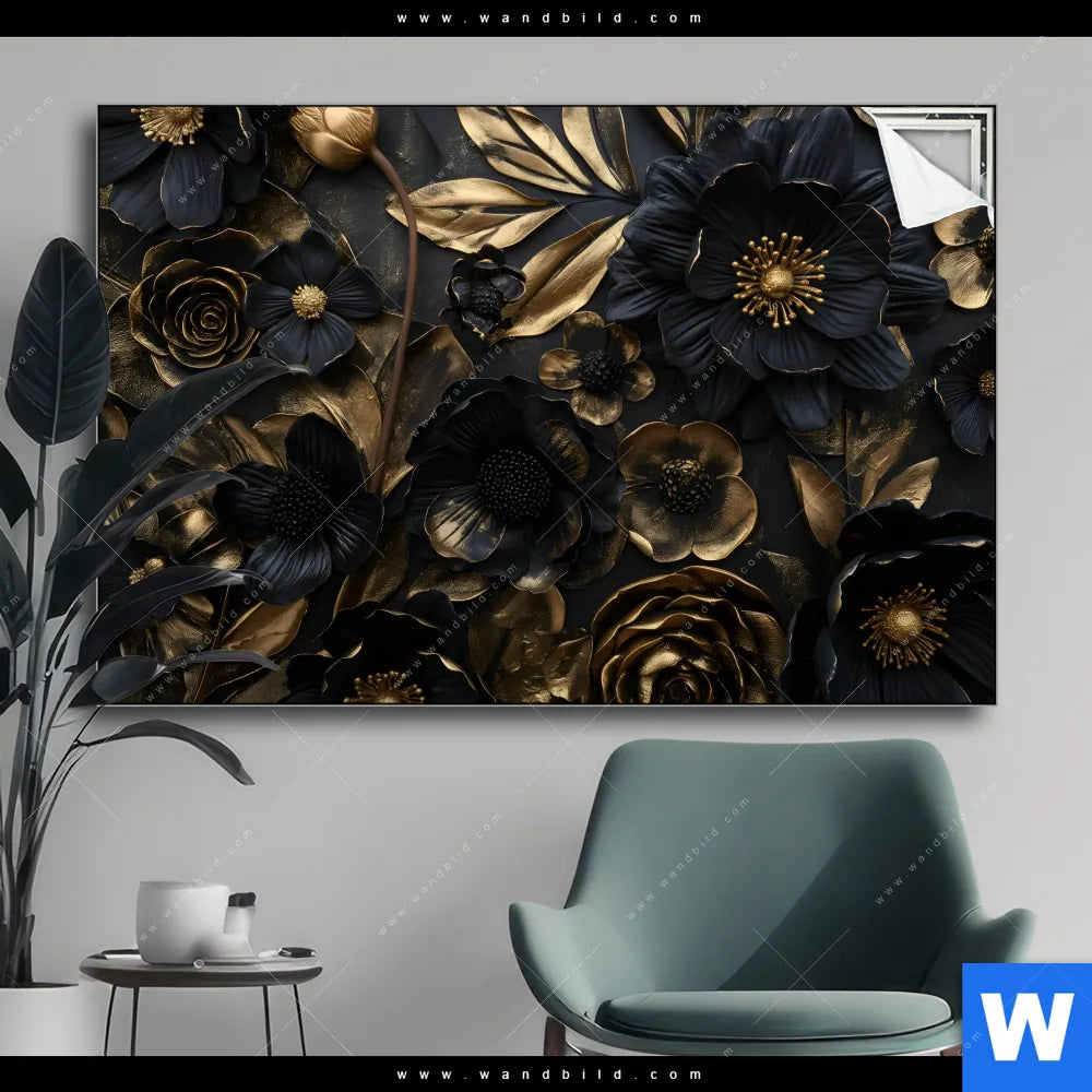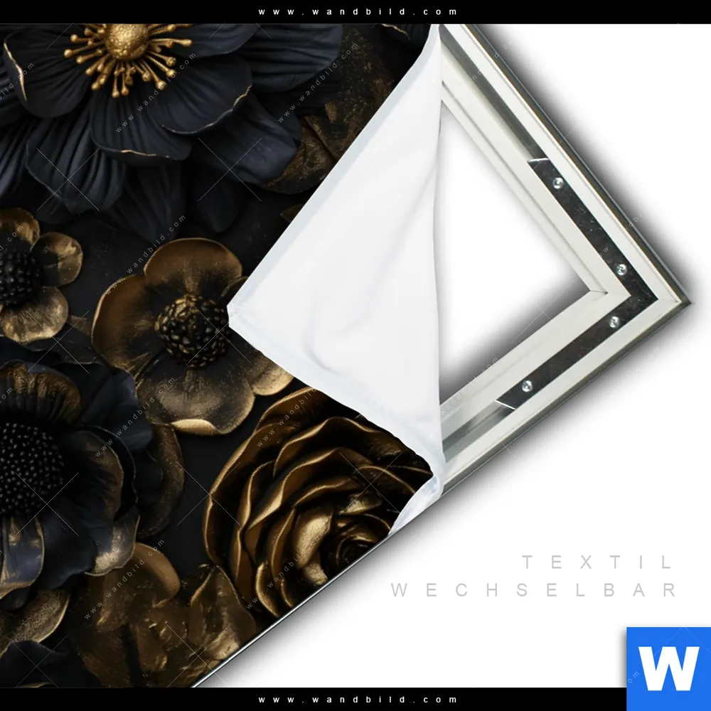 Spannbild | Schwarze und goldene Blüten | Querformat