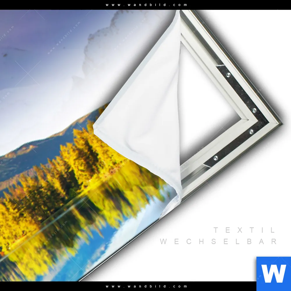 Wechselbild mit Flachkeder-Technik inkl. Aluminium-Textilrahmen