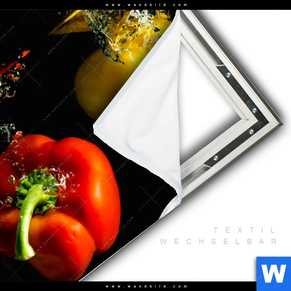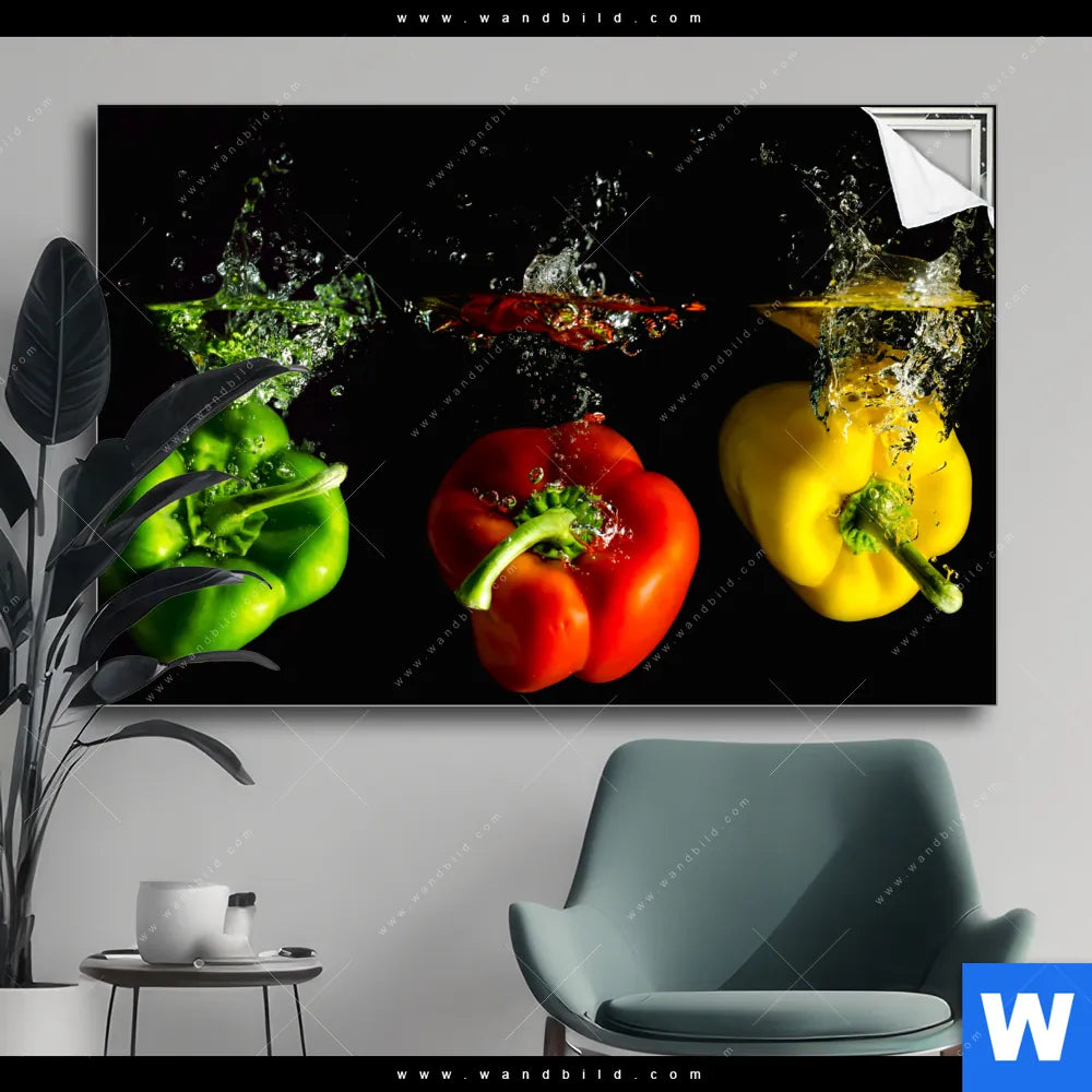 Spannbild | Spritzer von Paprika beim fallen ins Wasser | Querformat