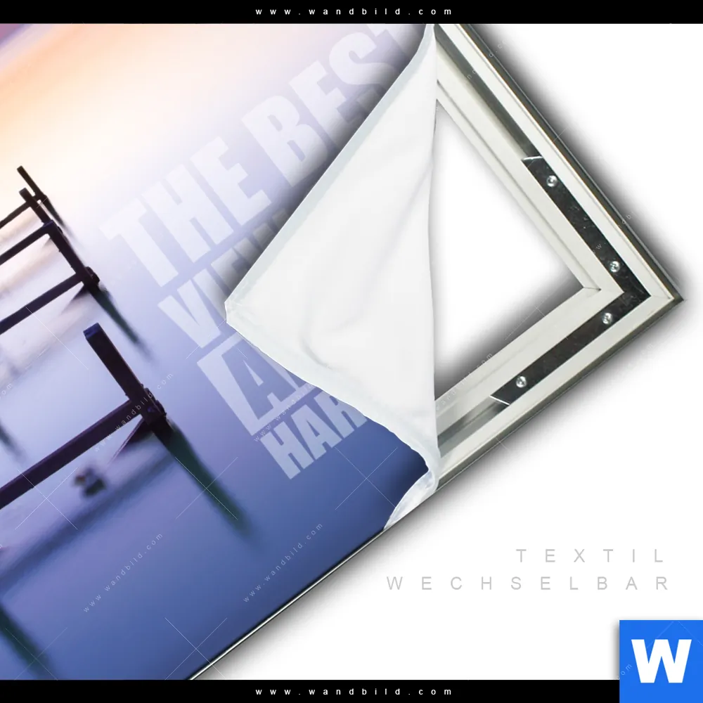Wechselbild mit Flachkeder-Technik inkl. Aluminium-Textilrahmen