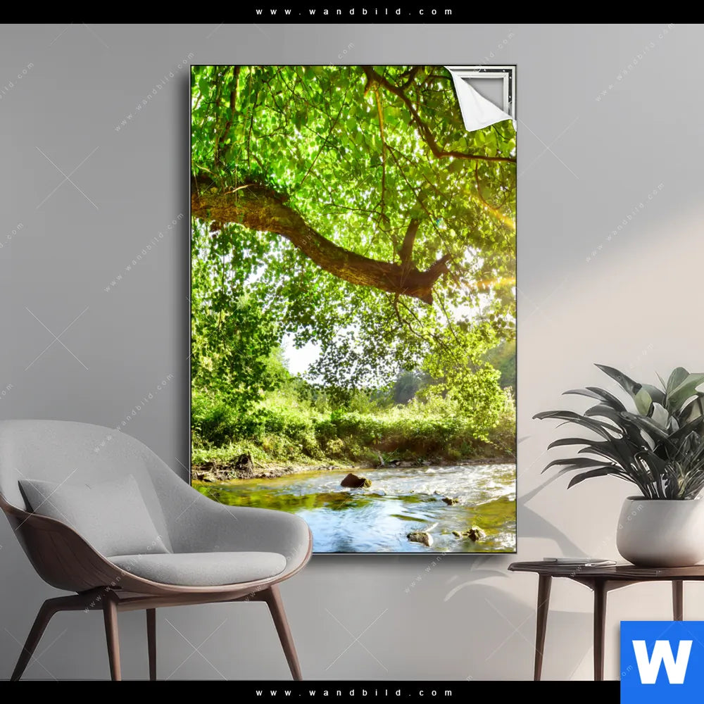 Spannbild | Wald mit Bach bei Sonnenschein | Hochformat