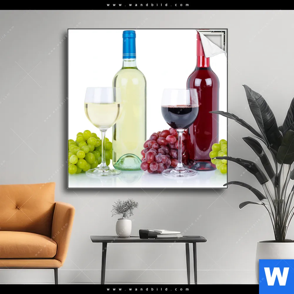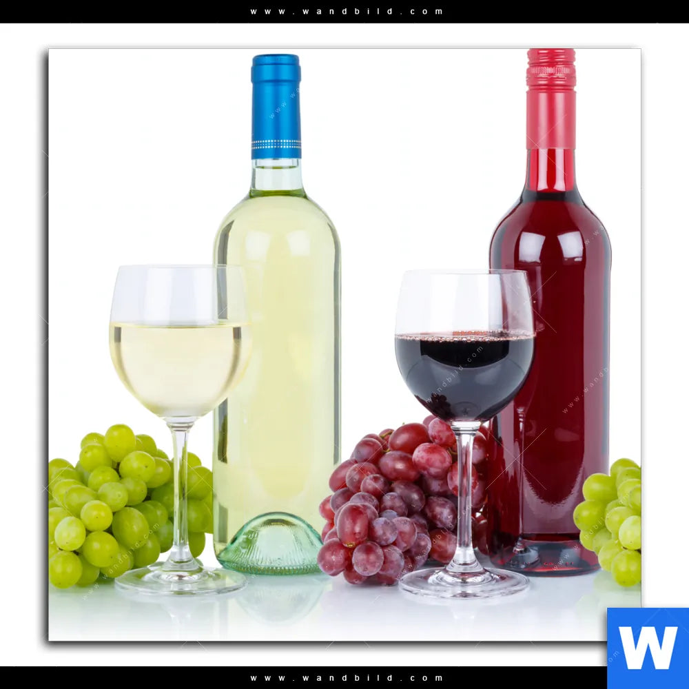 Spannbild | Wein in Flaschen und Gläsern | Quadrat