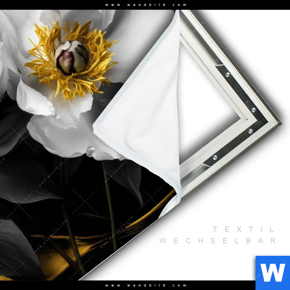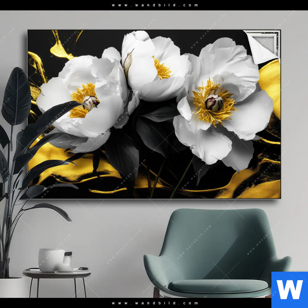 Spannbild | Weiße Blumen mit Gold | Querformat
