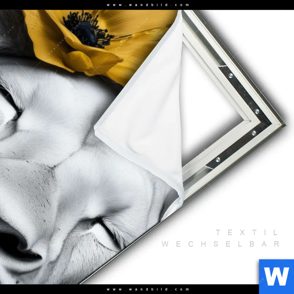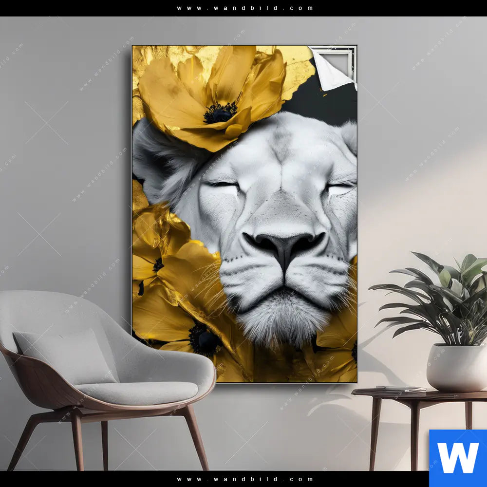 Spannbild | Weiße Löwin mit Goldblüten | Hochformat