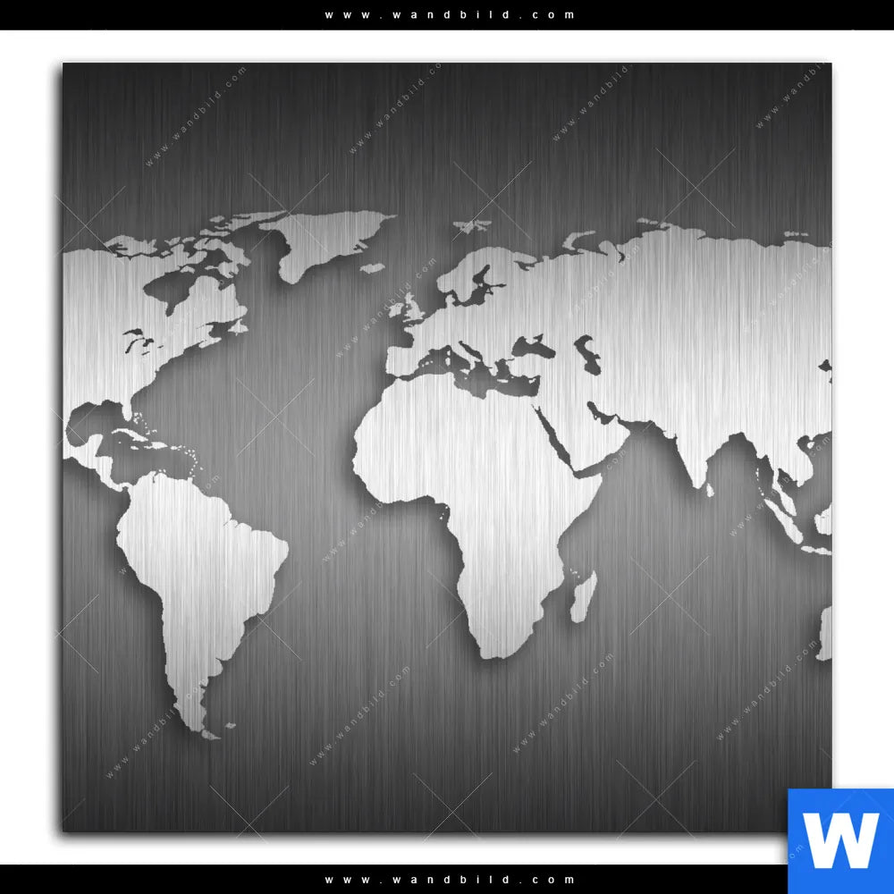 Spannbild | Weltkarte Edelstahloptik | Quadrat