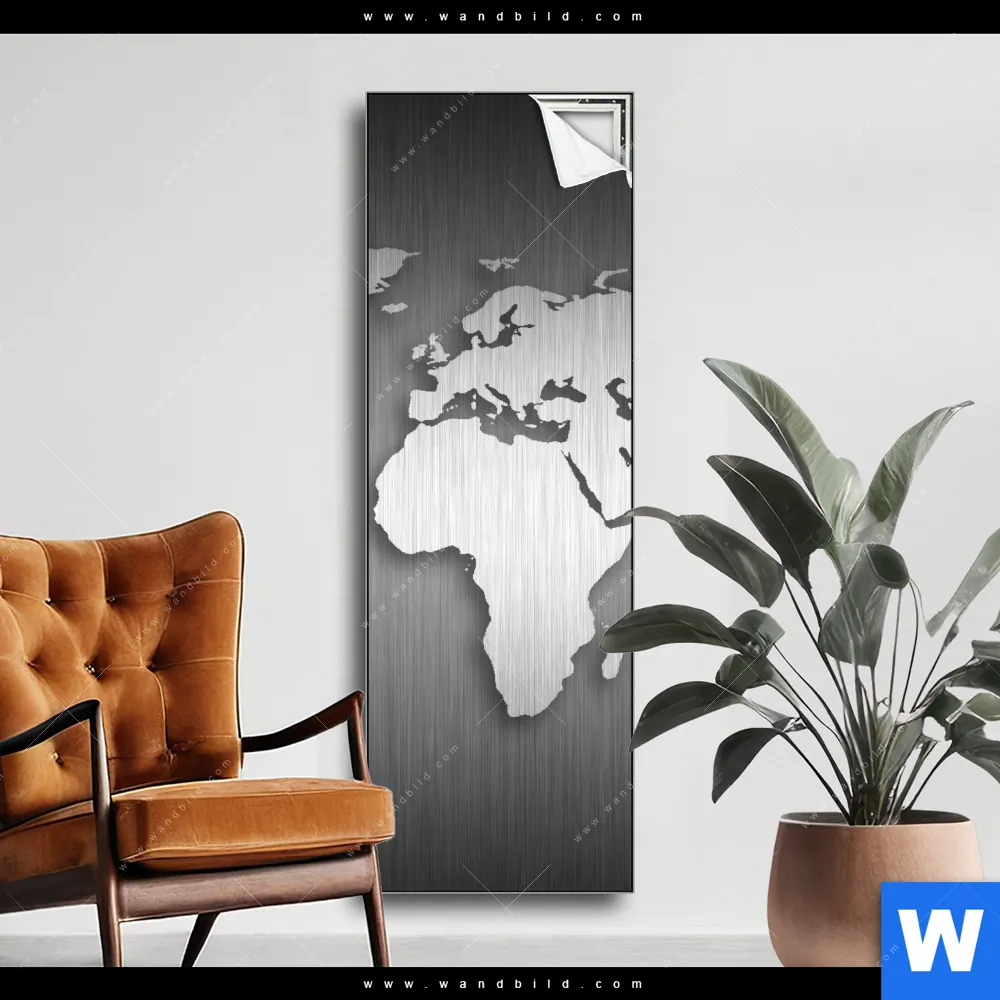 Spannbild | Weltkarte Edelstahloptik | Schmal