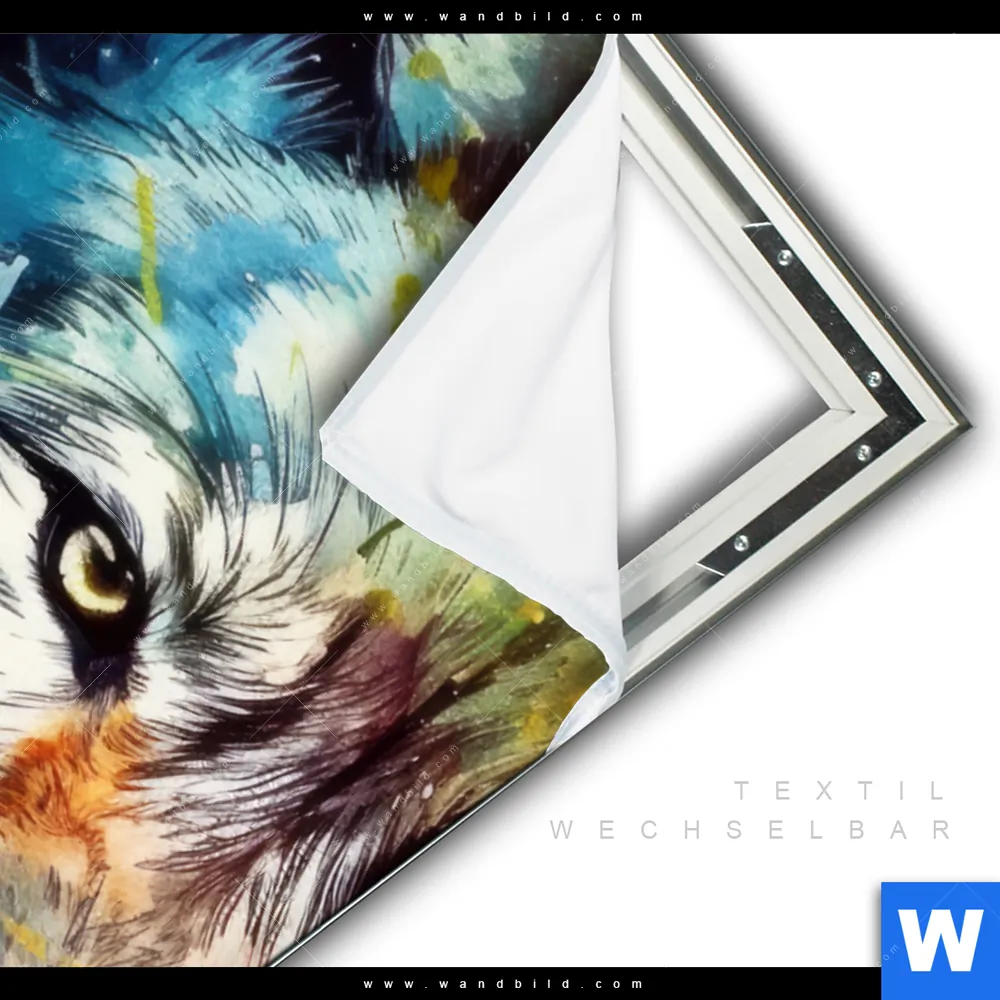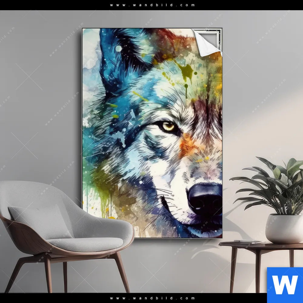 Spannbild | Wolf mit bunten Farbspritzern No. 2 | Hochformat