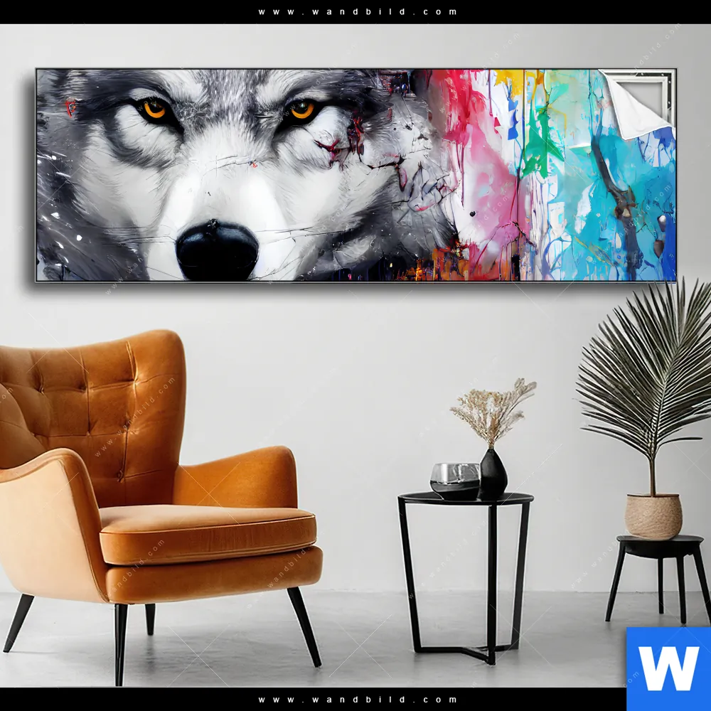 Spannbild | Wolf mit bunten Farbspritzern | Panorama