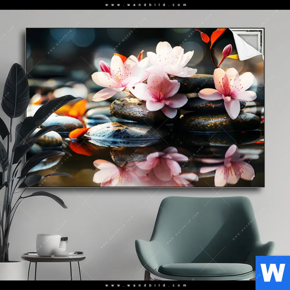 Spannbild | Zen Steine mit Blumen | Querformat