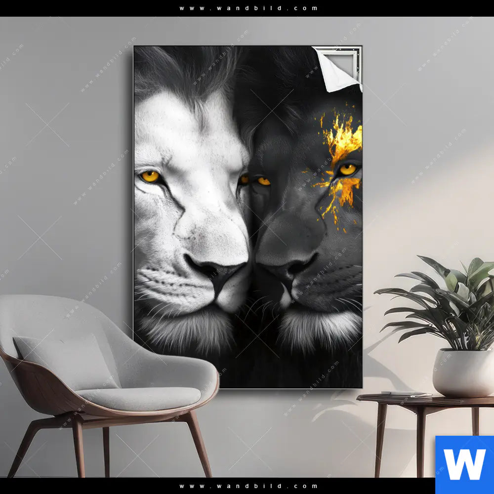 Spannbild | Zwei Löwen Schwarz & Weiß | Hochformat