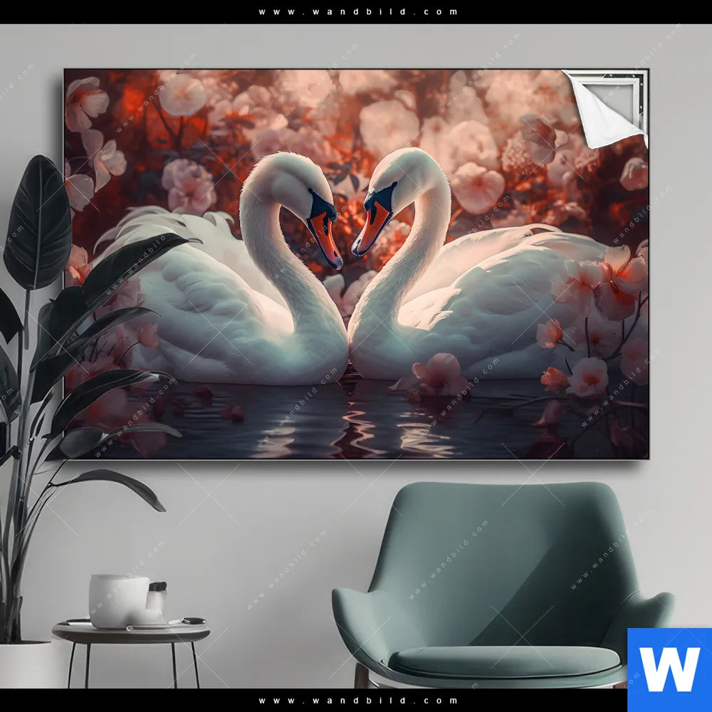 Spannbild | Zwei Schwäne im Wasser | Querformat