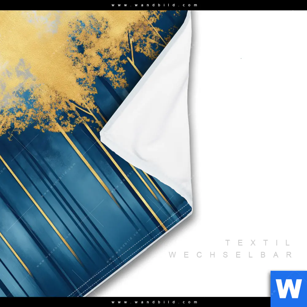 Wechselmotiv Textil | Abstrakter Wald - Blau & Gold | Quadrat