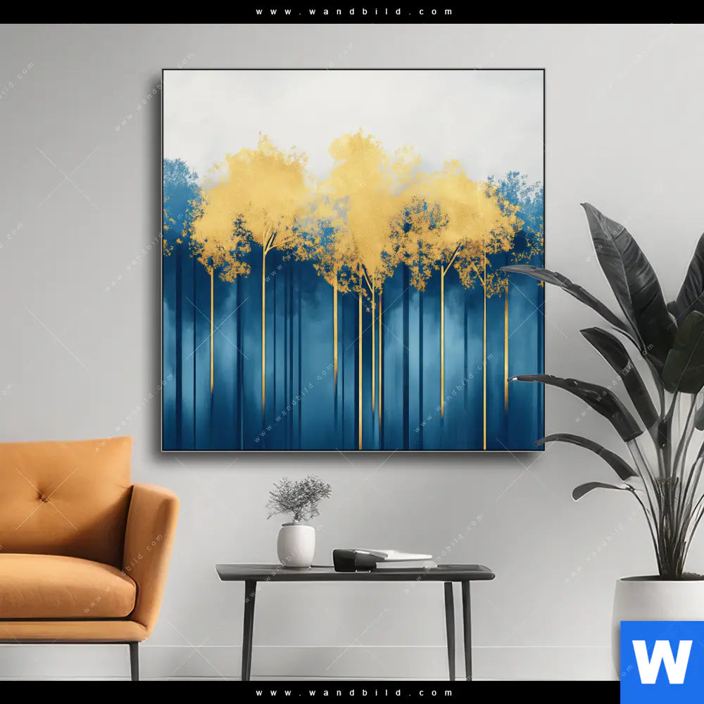 Wechselmotiv | Abstrakter Wald - Blau & Gold | Quadrat