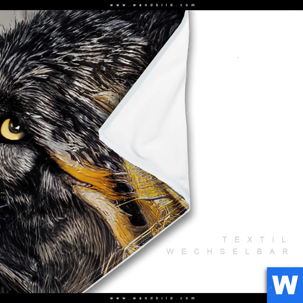 Wechselmotiv Textil | Abstrakter Wolf in Gold und Grau | Hochformat