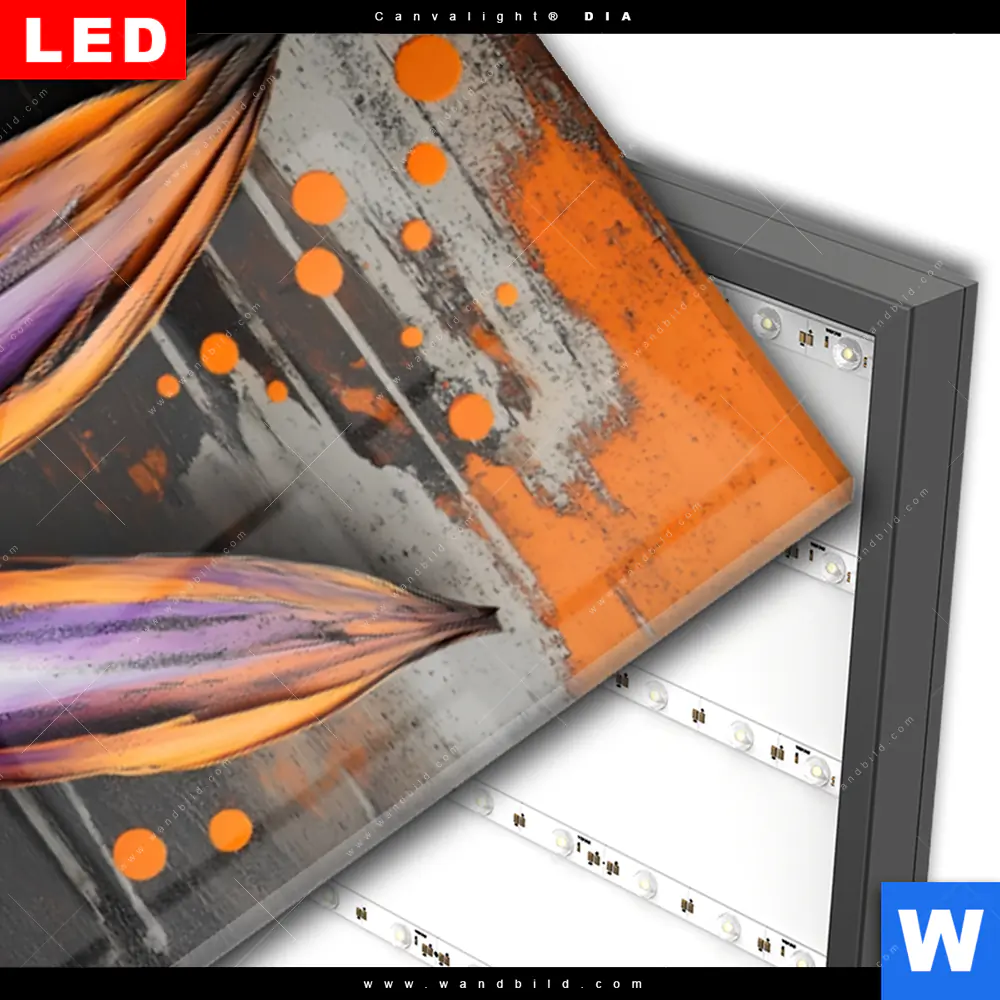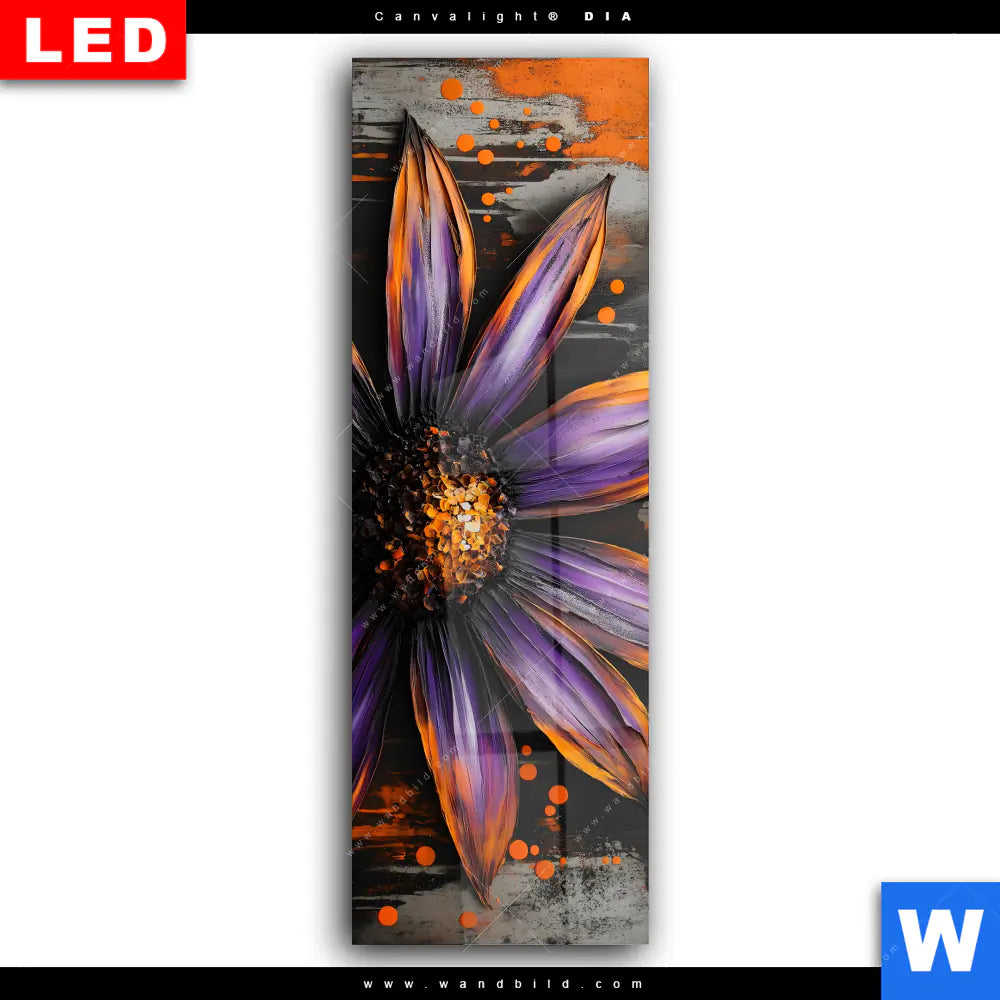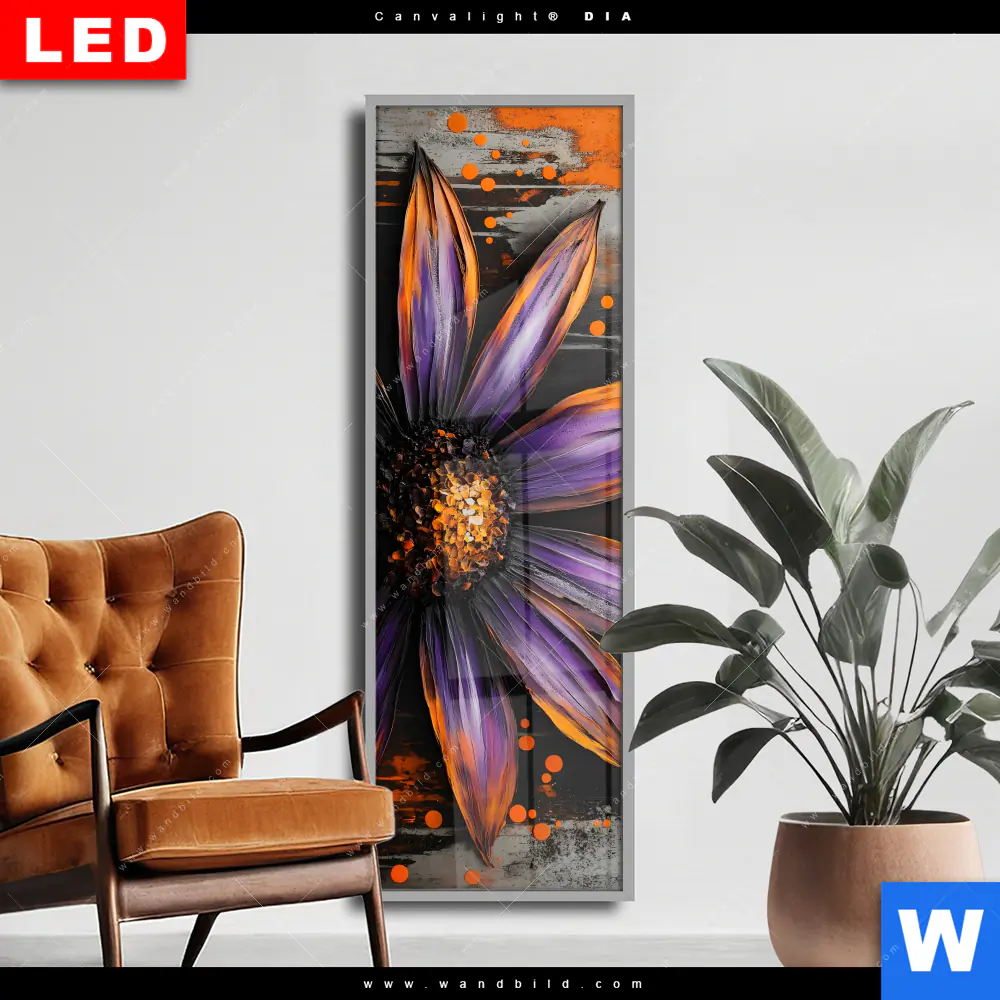 Wechselmotiv Acrylglas Canvalight® DIA | Abstrakte Blume in Orange & Lila | Schmal