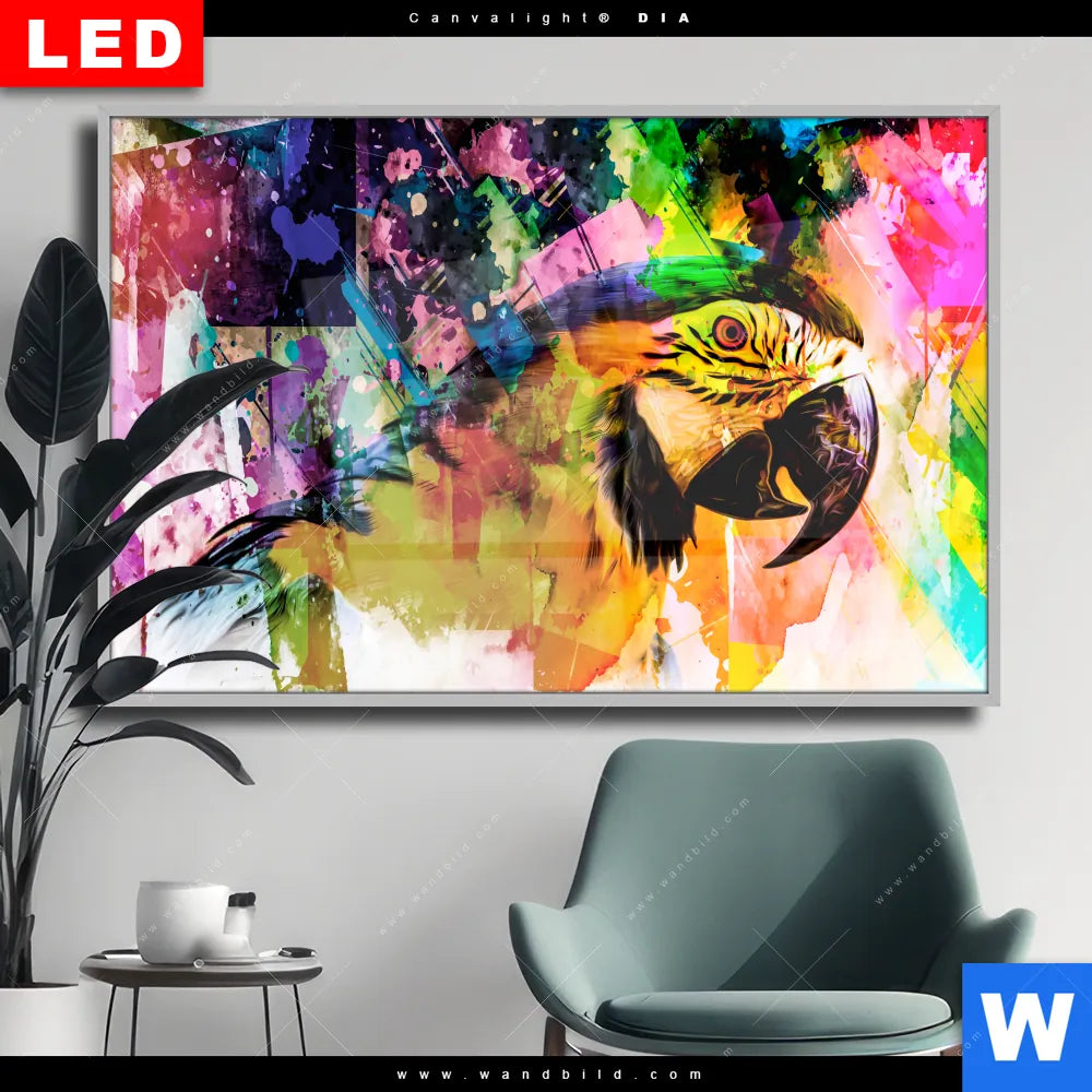 Wechselmotiv Acrylglas Canvalight® DIA | Abstrakter Papagei | Querformat
