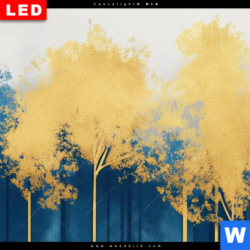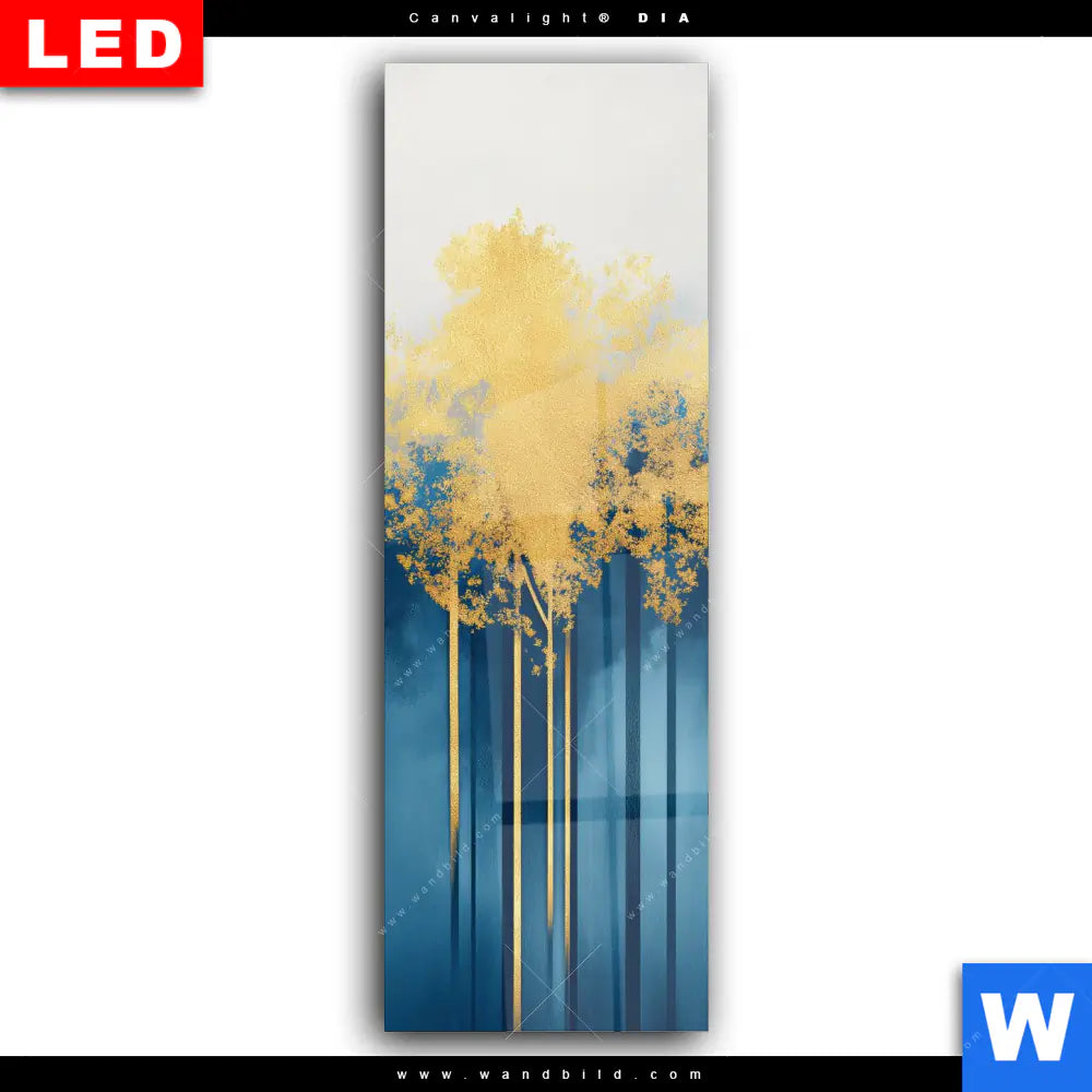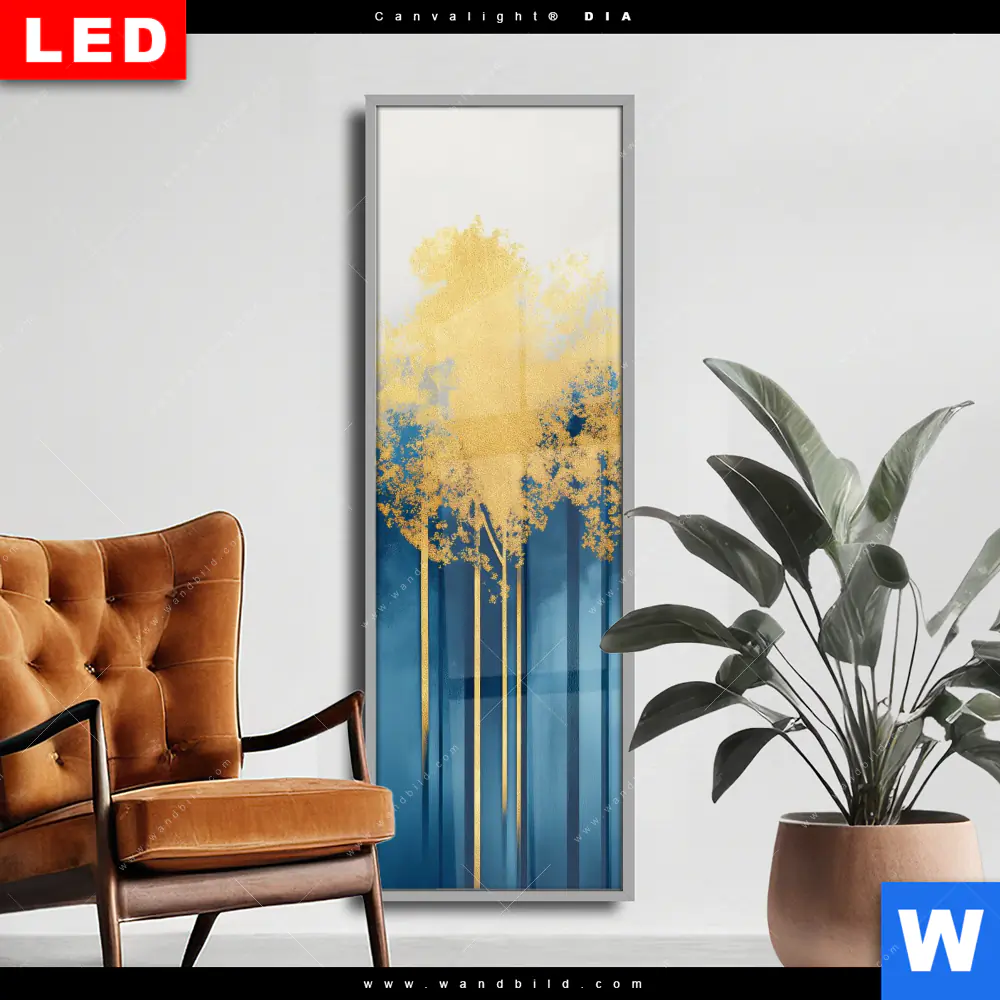 Wechselmotiv Acrylglas Canvalight® DIA | Abstrakter Wald - Blau & Gold | Schmal