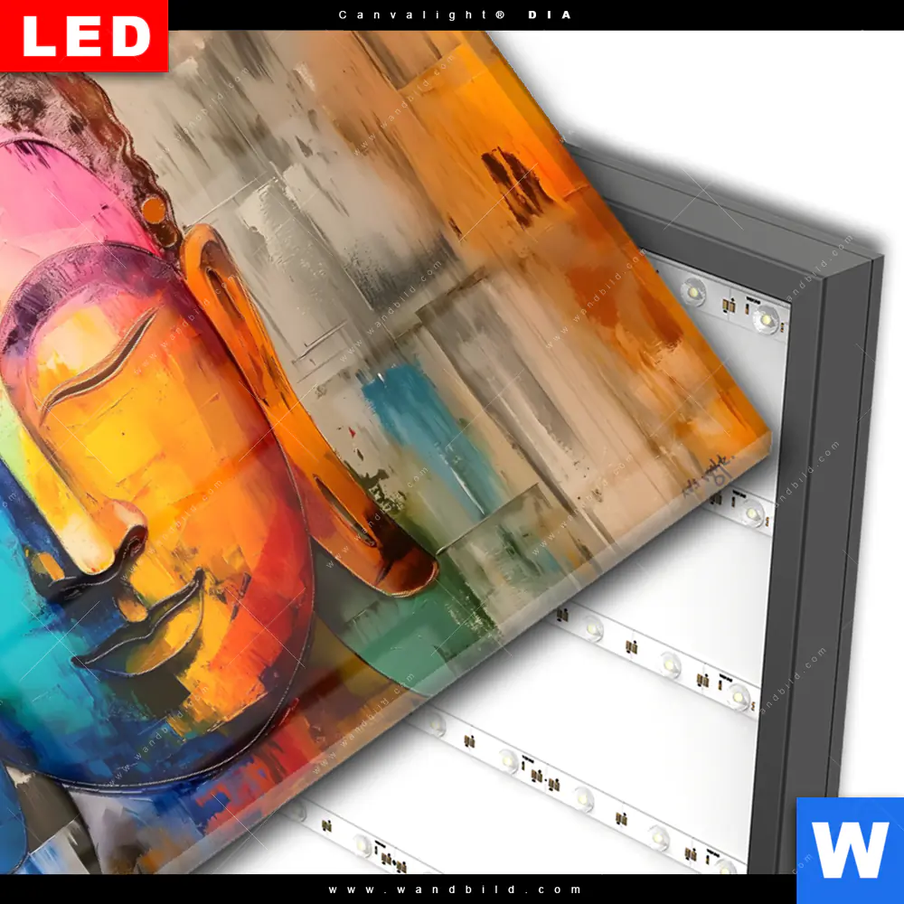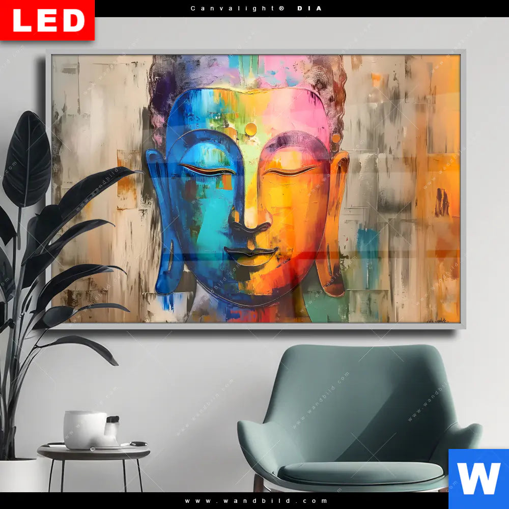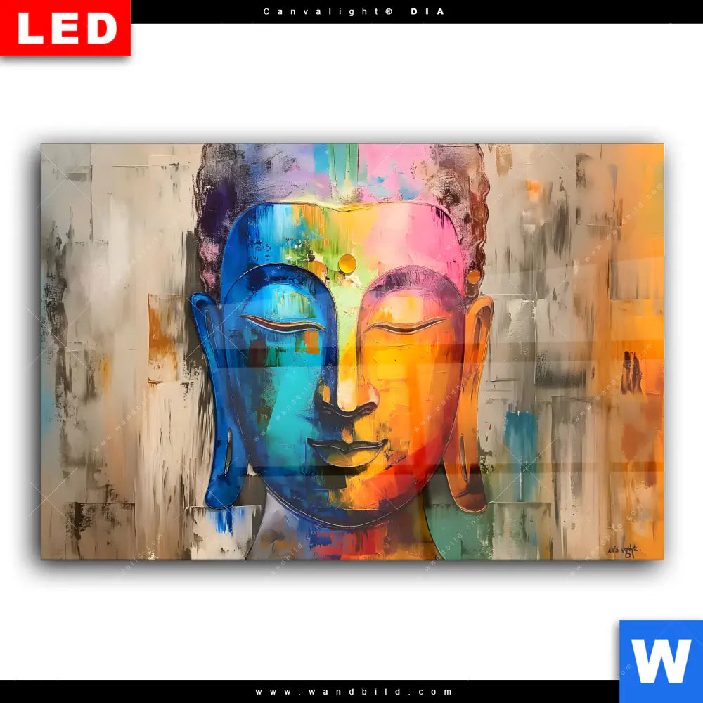 Wechselmotiv Acrylglas Canvalight® DIA | Abstraktes Buddha-Gesicht | Querformat
