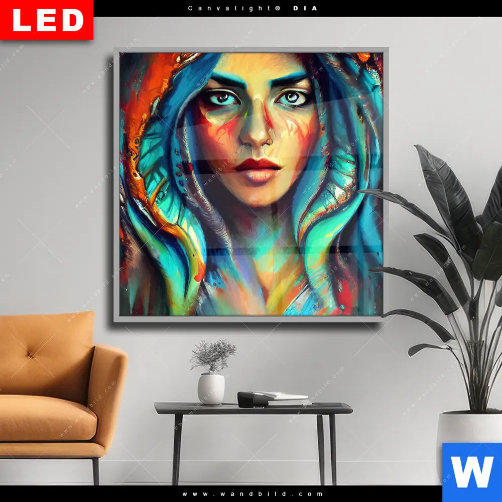 Wechselmotiv Acrylglas Canvalight® DIA | Abstraktes Frauenporträt Hydra | Quadrat