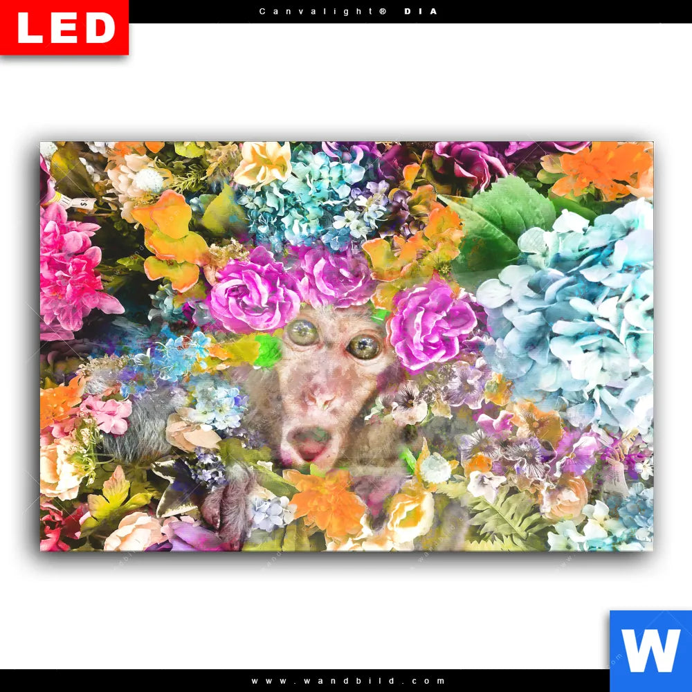Wechselmotiv Acrylglas Canvalight® DIA | Äffchen & Blumen | Querformat