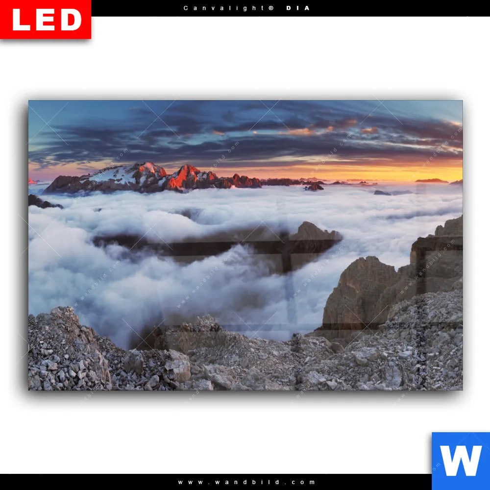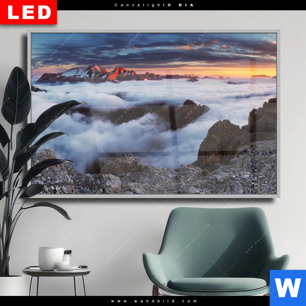 Wechselmotiv Acrylglas Canvalight® DIA | Alpen im Nebel | Querformat