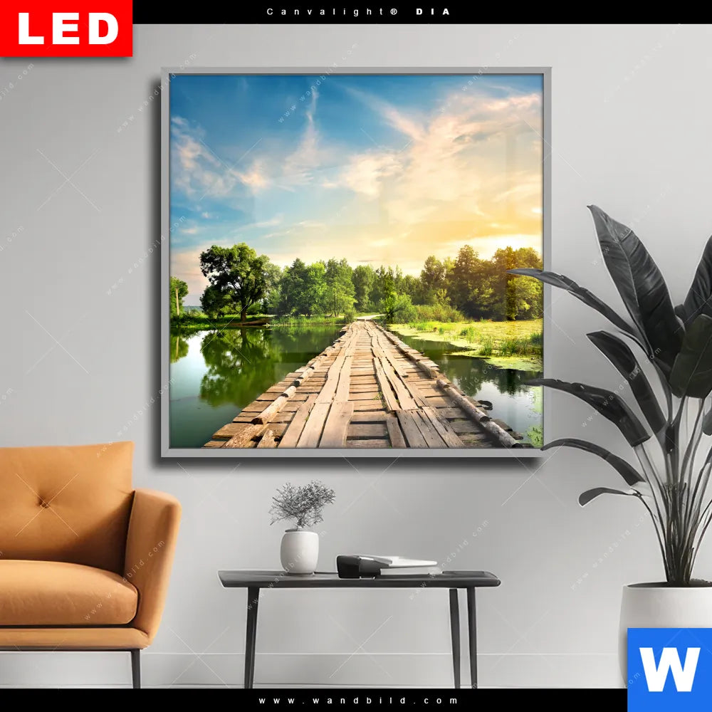 Wechselmotiv Acrylglas Canvalight® DIA | Alte Brücke am Fluss | Quadrat